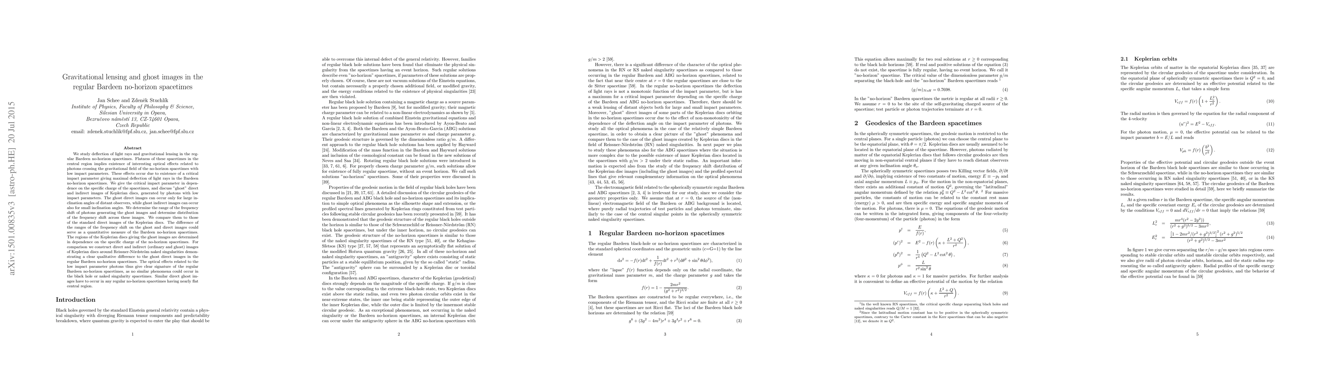 This research explores gravitational lensing in regular Bardeen no-horizon spacetimes, identifying unique optical effects arising from photons with low impact parameters. It calculates critical impact parameters and discusses 'ghost' images of Keplerian discs visible only at large inclination angles of distant observers, which could distinguish these spacetimes from black hole or naked singularity ones.