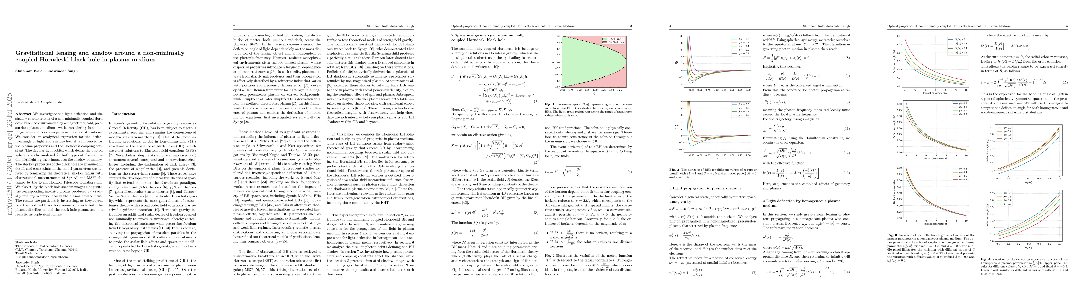 We investigate the light deflection and the shadow characteristics of a non-minimally coupled Horndeski black hole surrounded by a magnetized, cold, pressureless plasma medium, while considering both homogeneous and non-homogeneous plasma distributions. We consider an analytical expression for the deflection angle of light and analyze how it is influenced by the plasma properties and the Horndeski coupling constant. The circular light orbits, which define the photon sphere, are also analyzed for both types of plasma media, highlighting their impact on the shadow boundary. The shadow properties of the black hole are examined in detail, and constraints on the model parameters are derived by comparing the theoretical shadow radius with observational measurements of Sgr A* and M87* obtained by the Event Horizon Telescope Collaboration. We also study the black hole shadow images along with the corresponding intensity profiles produced by a radially infalling accretion flow in the plasma environment. The results are particularly interesting, as they reveal how the modified black hole geometry affects both the plasma distribution and the black hole parameters in a realistic astrophysical context.
