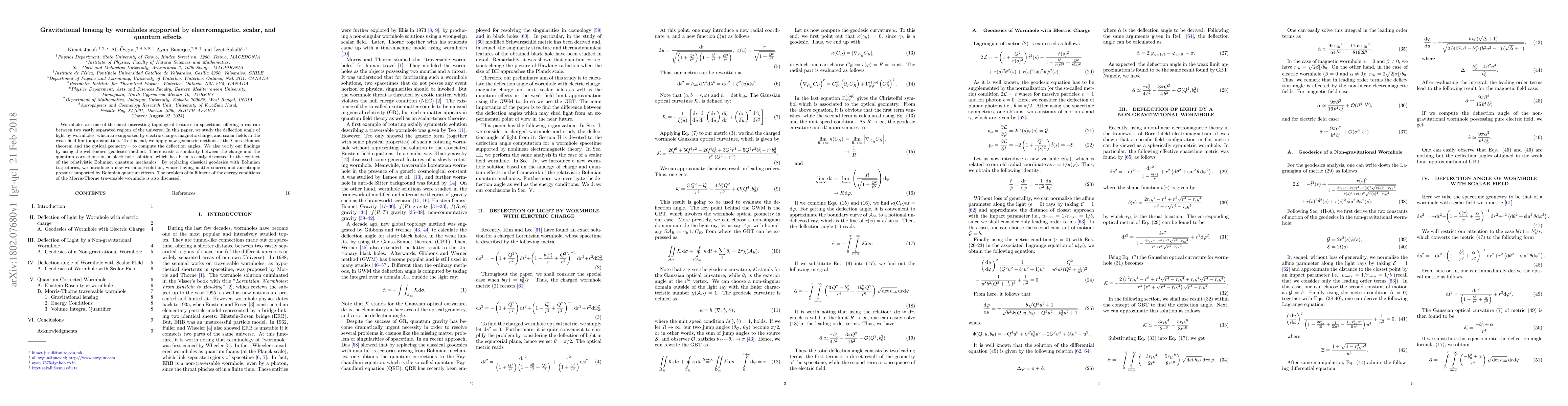 This paper investigates gravitational lensing caused by wormholes supported by electric, magnetic, and scalar fields, employing the Gauss-Bonnet theorem and optical geometry to compute light deflection angles. It also introduces a new wormhole solution influenced by Bohmian quantum mechanics and discusses the fulfillment of energy conditions for traversable wormholes.