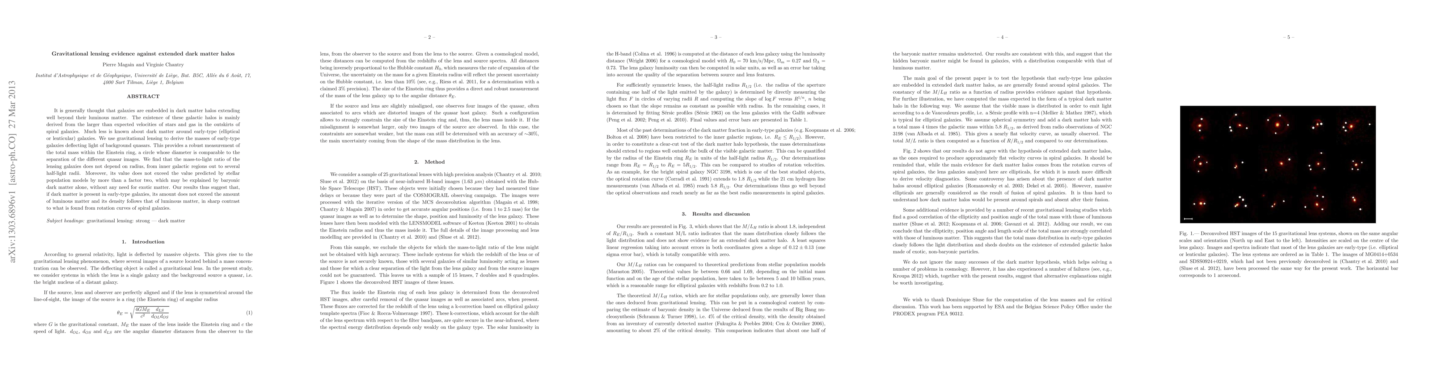 This paper uses gravitational lensing to measure the mass distribution in early-type galaxies, finding no evidence for extended dark matter halos beyond their luminous matter. The mass-to-light ratio remains consistent across radii, suggesting baryonic dark matter suffices without requiring exotic dark matter.