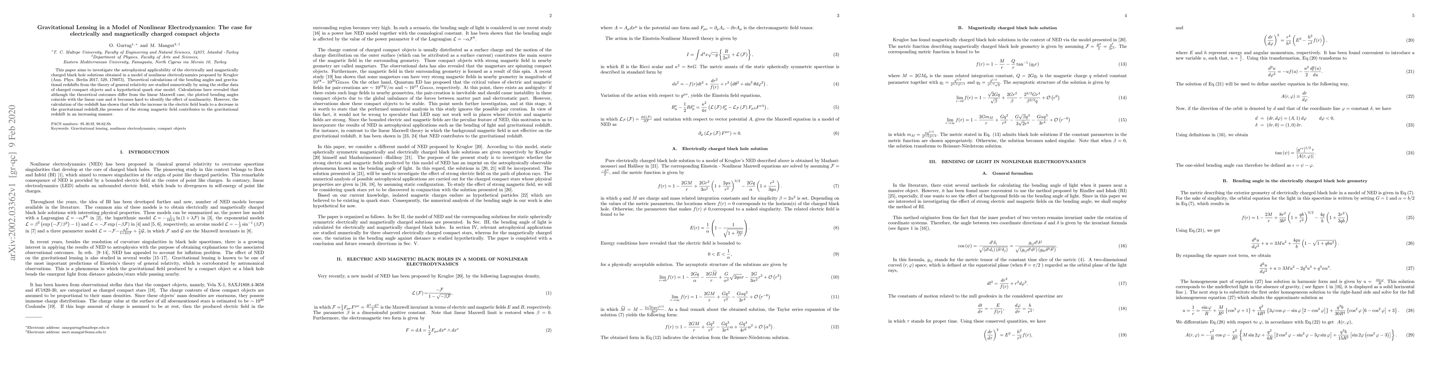 This paper aims to investigate the astrophysical applicability of the electrically and magnetically charged black hole solutions obtained in a model of nonlinear electrodynamics proposed by Kruglov (Ann. Phys. Berlin 2017, 529, 170073). Theoretical calculations of the bending angles and gravitational redshifts from the theory of general relativity are studied numerically by using the stellar data of charged compact objects and a hypothetical quark star model. Calculations have revealed that although the theoretical outcomes differ from the linear Maxwell case, the plotted bending angles coincide with the linear case and it becomes hard to identify the effect of nonlinearity. However, the calculation of the redshift has shown that while the increase in the electric field leads to a decrease in the gravitational redshift,the presence of the strong magnetic field contributes to the gravitational redshift in an increasing manner.