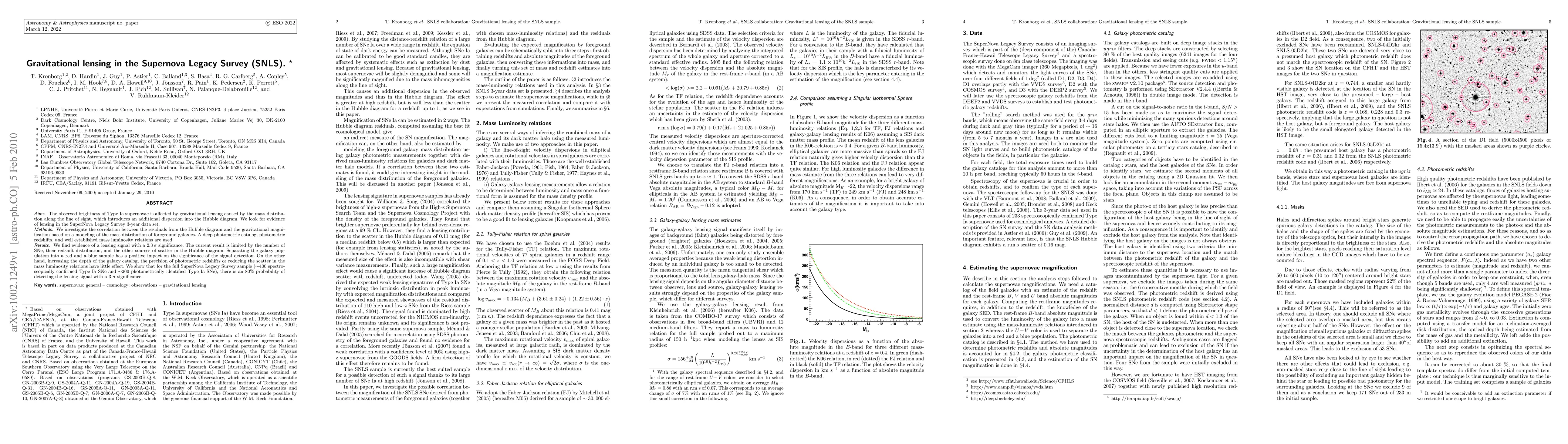 The Supernova Legacy Survey (SNLS) finds a 2.3 sigma lensing signal affecting Type Ia supernovae brightness, indicating gravitational lensing's impact on the Hubble diagram. With improved sample size, there is an 80% probability of detecting this lensing signal with a 3 sigma significance.
