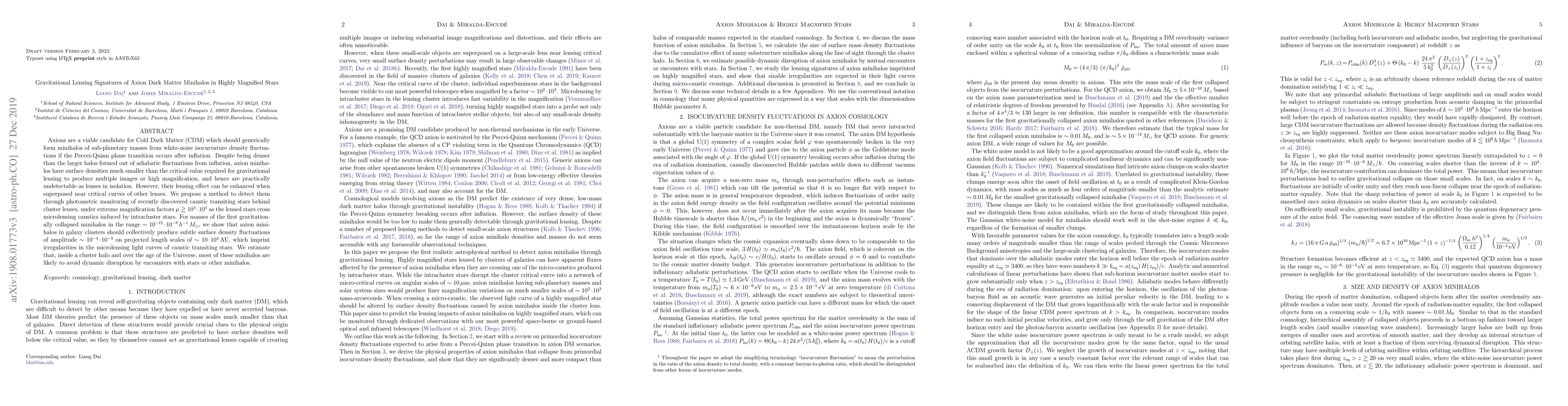 This paper proposes a method to detect axion dark matter minihalos via gravitational lensing signatures in highly magnified stars. It suggests that axion minihalos in galaxy clusters, though individually undetectable, can produce subtle surface density fluctuations that imprint irregularities on the light curves of caustic transiting stars, offering a potential detection strategy.