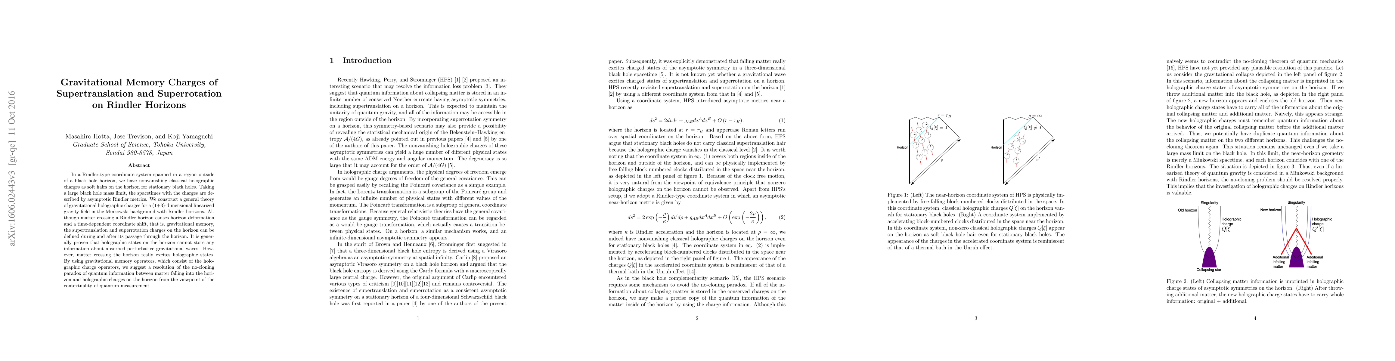 This paper explores gravitational memory charges associated with supertranslation and superrotation on Rindler horizons in the context of linearized gravity. It demonstrates that while matter crossing the horizon causes deformation and coordinate shifts, holographic charges remain defined and do not store information about absorbed perturbative gravitational waves, resolving the no-cloning paradox through quantum measurement contextuality.