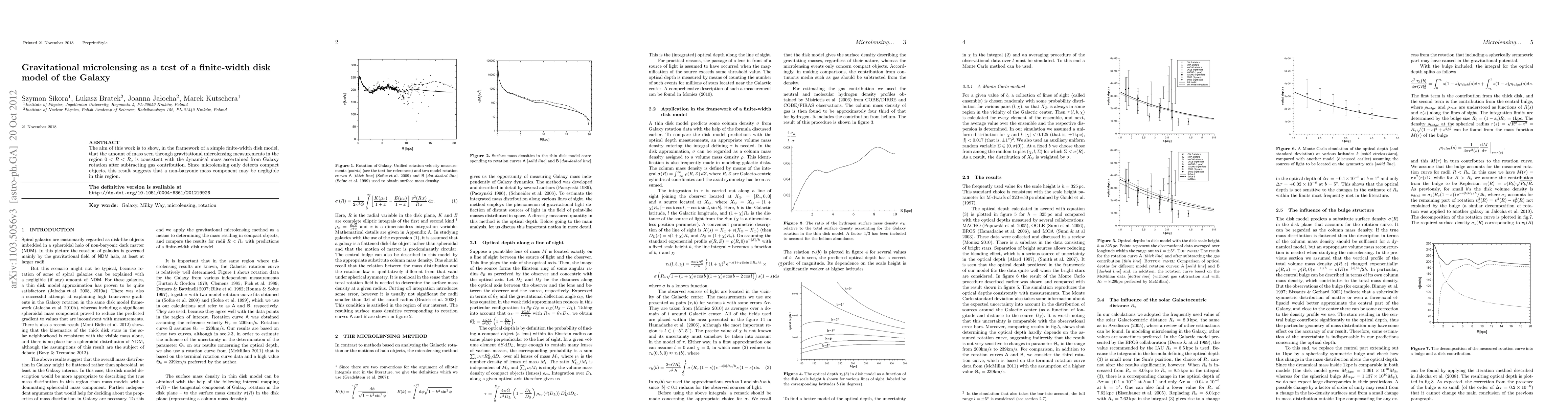 This study uses gravitational microlensing to test a finite-width disk model of the Galaxy, finding that the detected mass aligns with the dynamical mass from rotation curves, implying a negligible non-baryonic mass component in the region $0<R<R0$.