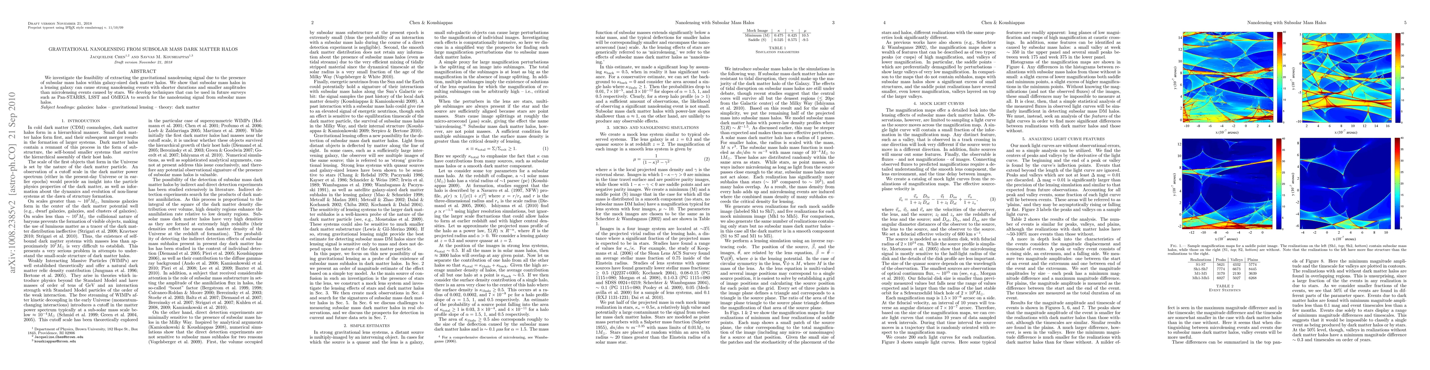 We investigate the feasibility of extracting the gravitational nanolensing signal due to the presence of subsolar mass halos within galaxy-sized dark matter halos. We show that subsolar mass halos in a lensing galaxy can cause strong nanolensing events with shorter durations and smaller amplitudes than microlensing events caused by stars. We develop techniques that can be used in future surveys such as Pan-STARRS, LSST and OMEGA to search for the nanolensing signal from subsolar mass halos.