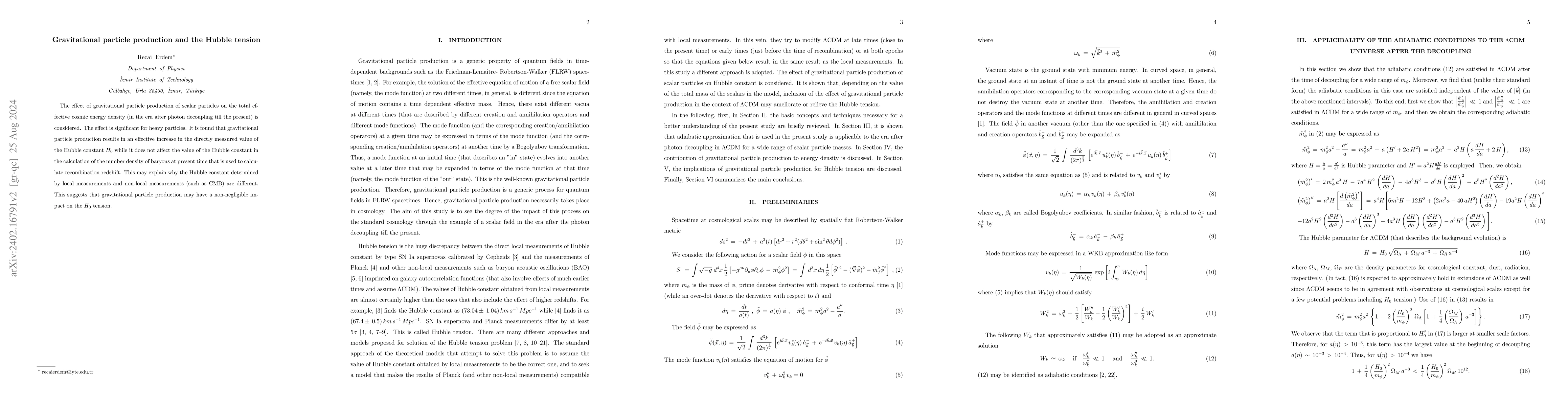 This paper investigates how gravitational particle production of heavy scalar particles can influence the effective cosmic energy density, leading to an increase in the locally measured Hubble constant $H_0$ without affecting the Hubble constant used in cosmic recombination calculations. This discrepancy may help explain the Hubble tension between local and non-local measurements.