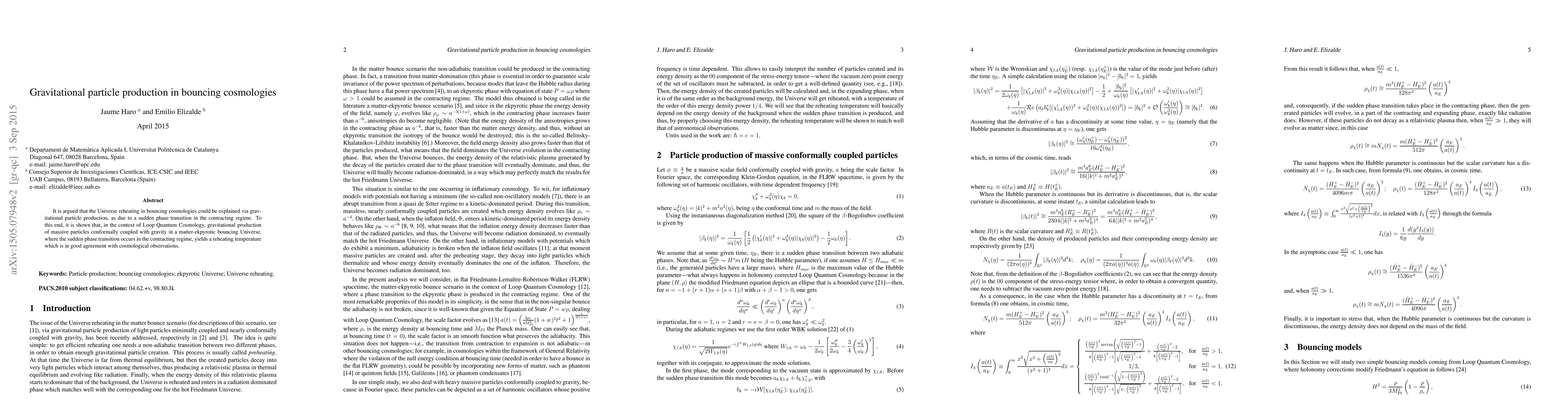 This paper explores how gravitational particle production during a phase transition in the contracting phase of a bouncing cosmology could explain the reheating of the Universe, demonstrating that this mechanism yields a reheating temperature consistent with observational data.