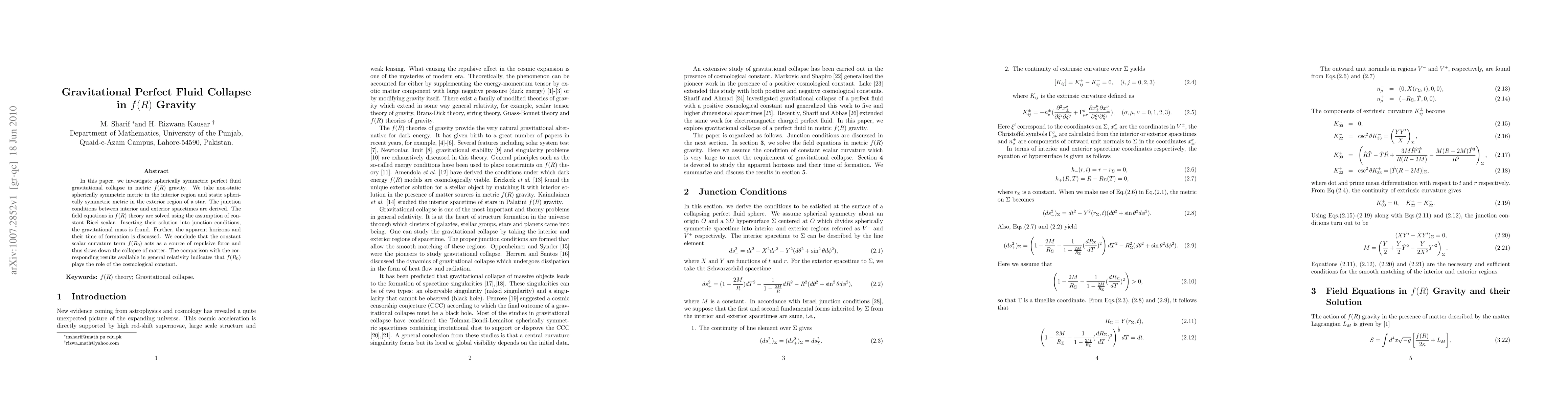 This paper explores the gravitational collapse of a perfect fluid in $f(R)$ gravity, deriving junction conditions for interior and exterior spacetimes. It finds that the constant Ricci scalar term $f(R_0)$ acts as a repulsive force, slowing the collapse and behaving analogously to a cosmological constant compared to general relativity.