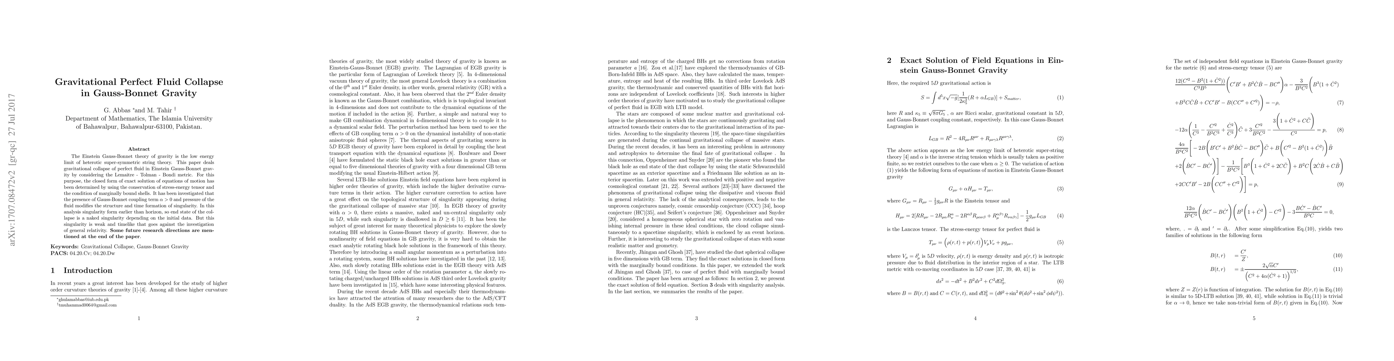 The Einstein Gauss-Bonnet theory of gravity is the low energy limit of heterotic super-symmetric string theory. This paper deals gravitational collapse of perfect fluid in Einstein Gauss-Bonnet gravity by considering the Lemaitre - Tolman - Bondi metric. For this purpose, the closed form of exact solution of equations of motion has been determined by using the conservation of stress-energy tensor and the condition of marginally bound shells. It has been investigated that the presence of Gauss-Bonnet coupling term $\alpha>0$ and pressure of the fluid modifies the structure and time formation of singularity. In this analysis singularity form earlier than horizon, so end state of the collapse is a naked singularity depending on the initial data. But this singularity is weak and timelike that goes against the investigation of general relativity.
