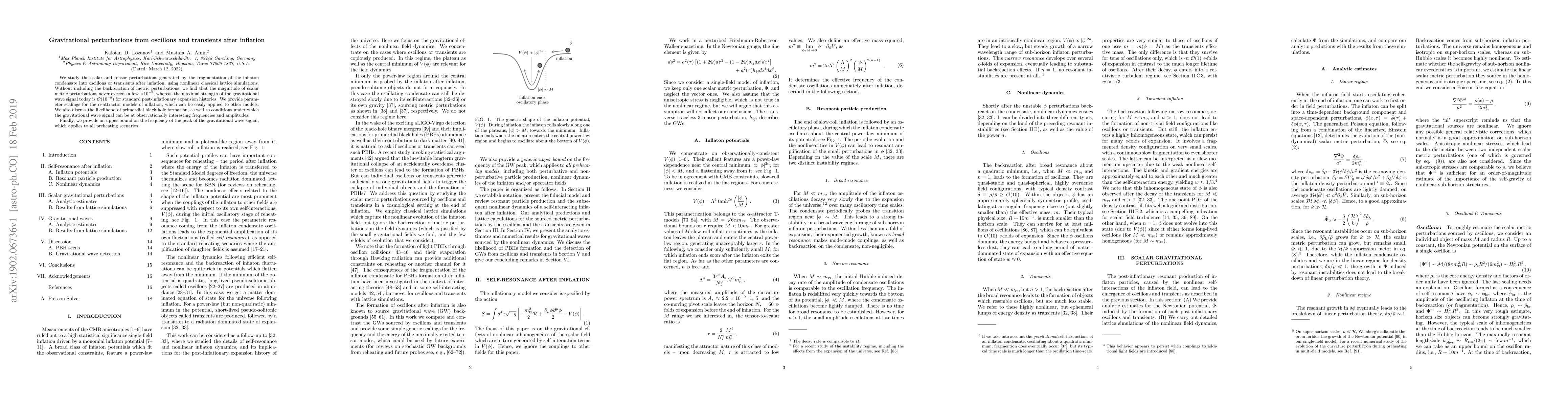 This paper investigates gravitational perturbations from oscillons and transients post-inflation, finding scalar metric perturbations below $10^{-3}$ and gravitational waves at $\mathcal{O}(10^{-9})$. It also discusses primordial black hole formation and the frequency of gravitational wave signals, providing an upper bound on the peak frequency for all preheating scenarios.