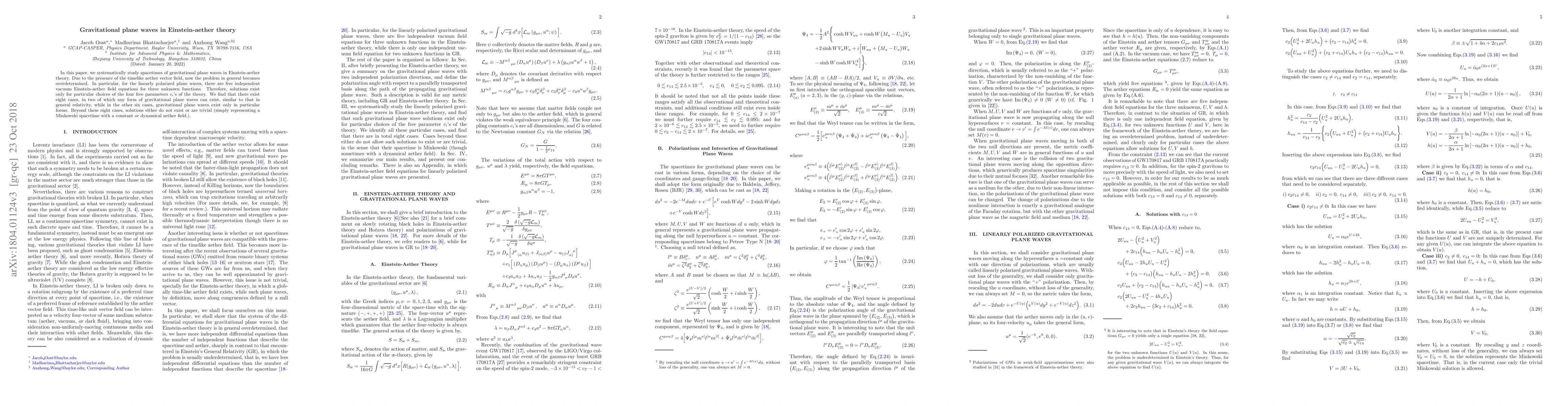 This paper investigates the spacetimes of gravitational plane waves within Einstein-aether theory, revealing that the presence of a timelike aether vector field leads to an overdetermined system. It identifies eight distinct cases where gravitational plane waves can exist, with two allowing any form similar to general relativity, while the others permit only specific wave forms.
