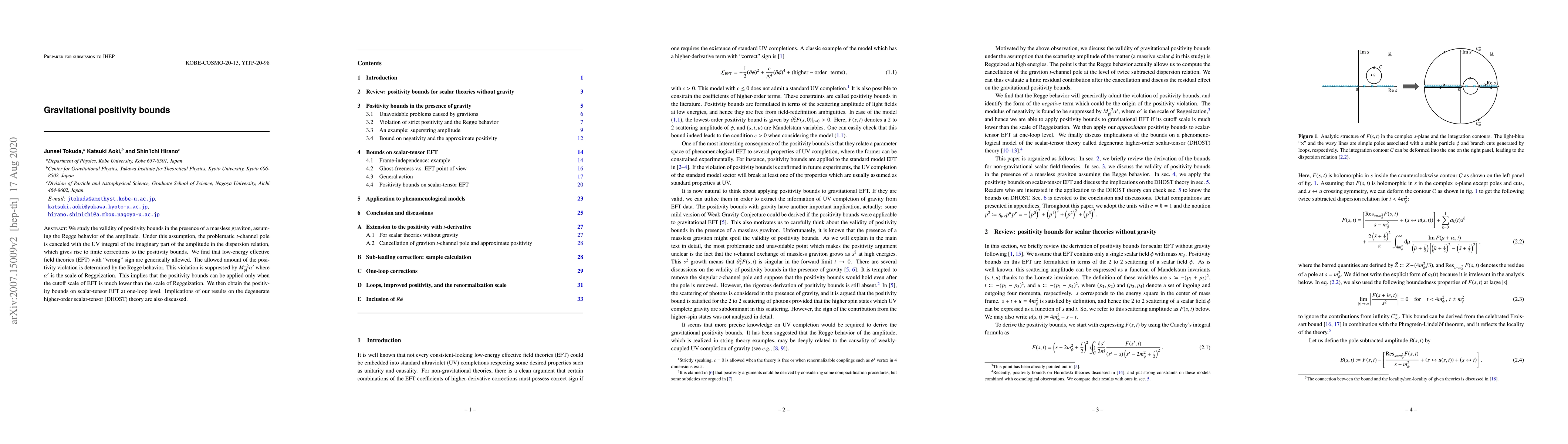 The paper derives and analyzes gravitational positivity bounds in the presence of a massless graviton, considering Regge behavior and obtaining finite corrections to the bounds through t-channel pole cancellation.