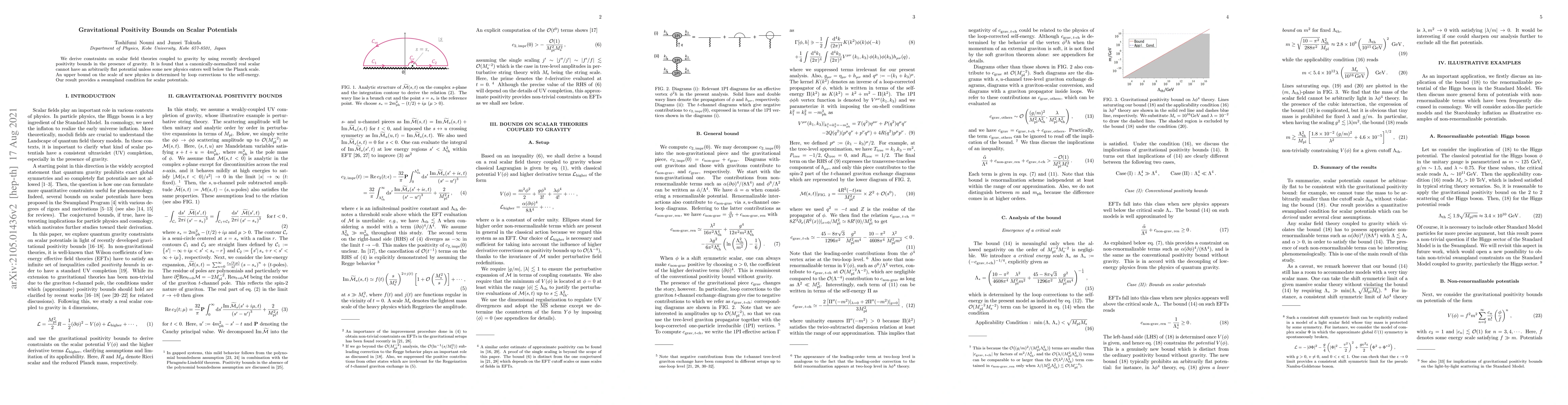 This paper derives gravitational positivity bounds to constrain scalar field theories in gravity, showing that a flat scalar potential requires new physics below the Planck scale, establishing a new swampland condition. The upper limit on this new physics is determined by loop corrections to the scalar's self-energy.