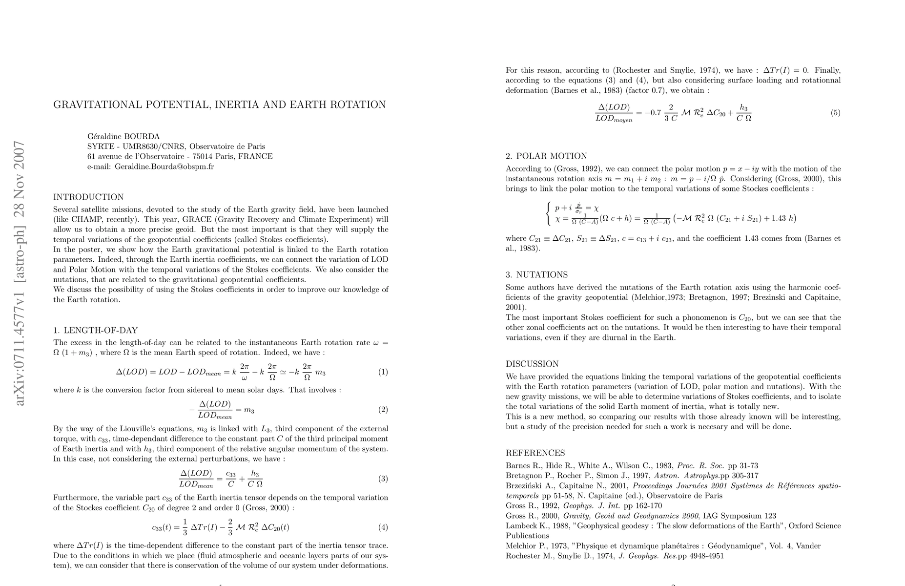 A study links Earth's gravitational potential to its rotation parameters, revealing a connection between temporal variations in gravity and Earth's rotation.