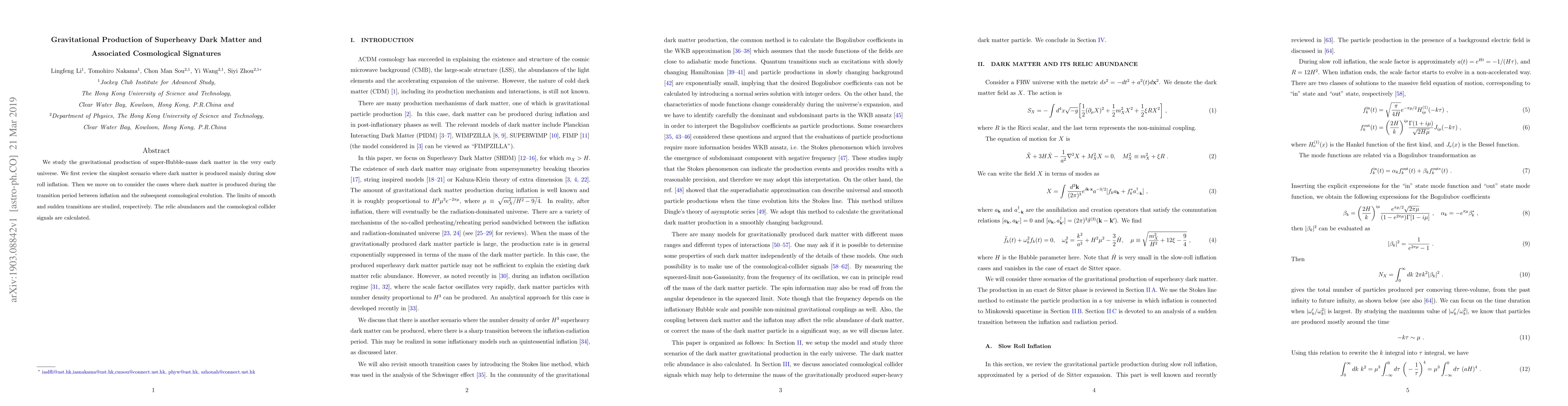 This paper examines how superheavy dark matter could be produced gravitationally during early universe inflation and the transition phase between inflation and subsequent cosmological evolution, analyzing relic abundances and associated cosmological signals.