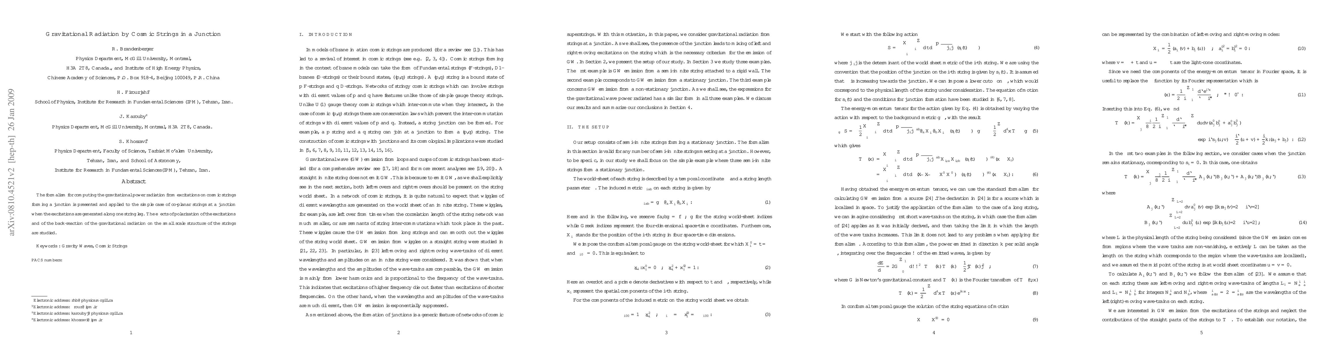 This paper presents a formalism to calculate gravitational radiation from cosmic string excitations at junctions, focusing on co-planar strings. It examines how excitation polarization and gravitational radiation back-reaction influence string structure.