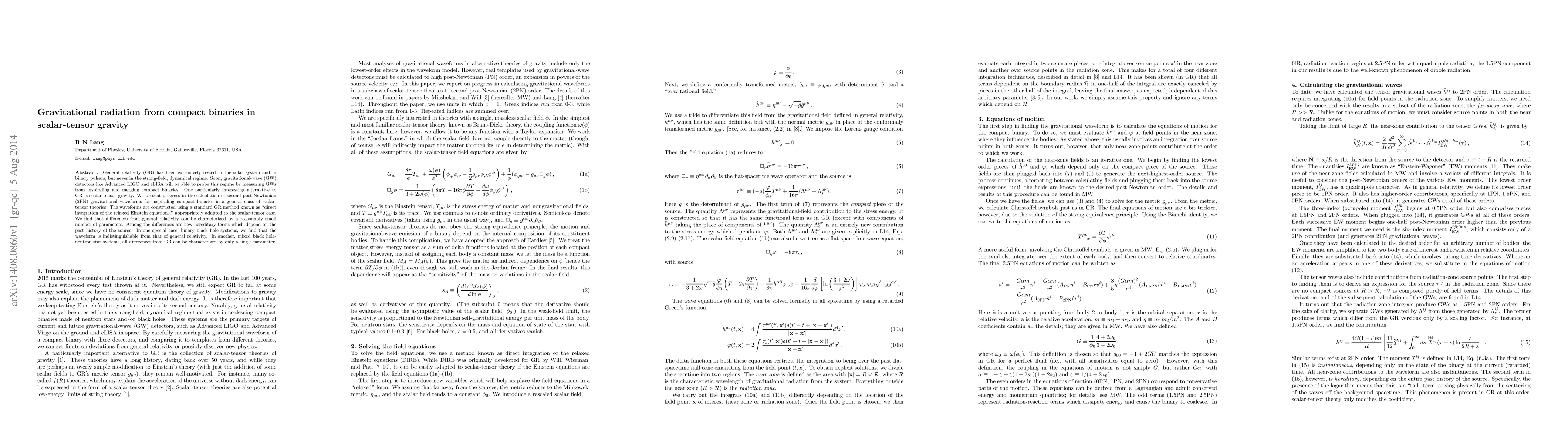 This paper investigates gravitational radiation from compact binaries in scalar-tensor gravity, presenting second post-Newtonian waveforms for these systems. It finds that while differences from general relativity exist, they can often be characterized by a small number of parameters, with some systems showing nearly identical waveforms to those predicted by general relativity.
