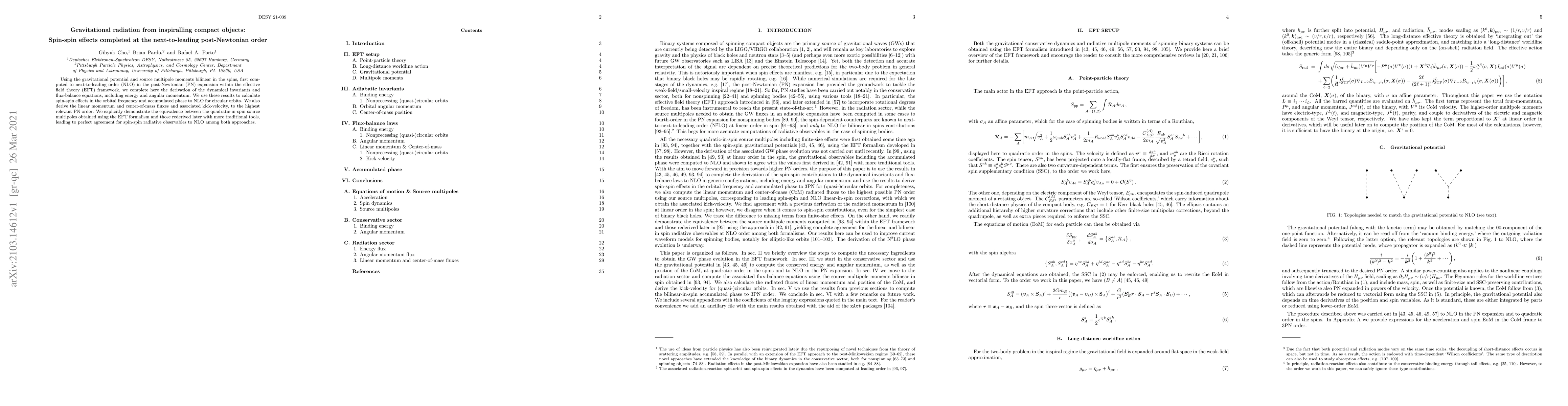 This paper completes the derivation of gravitational radiation effects from inspiralling compact objects, focusing on spin-spin interactions at the next-to-leading post-Newtonian order. The study uses effective field theory to compute spin-spin effects on the orbital frequency and phase, and derives the linear momentum and center-of-mass flux, demonstrating agreement between EFT and traditional methods.
