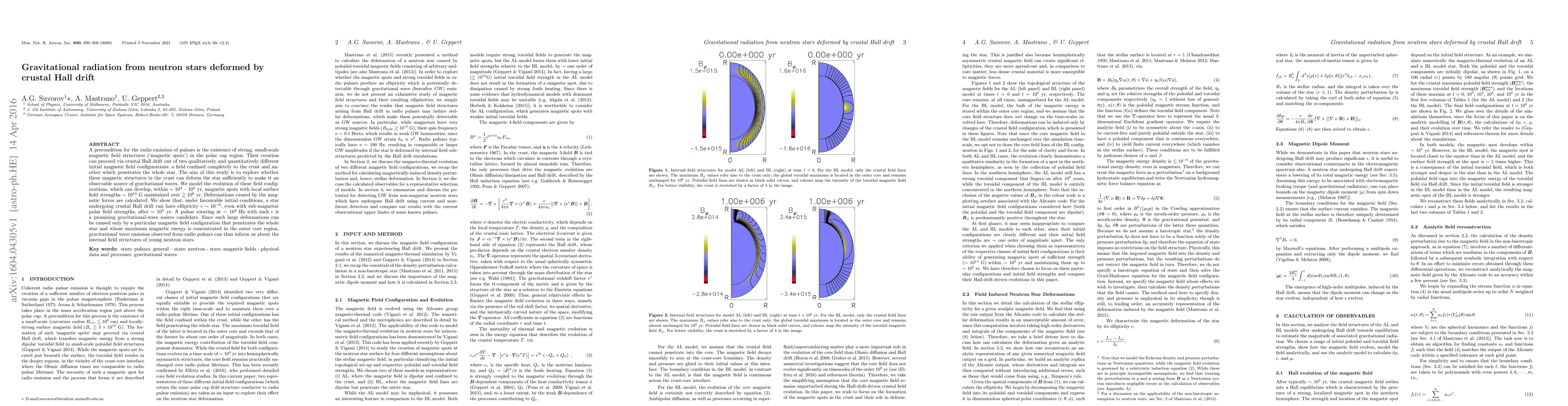 A precondition for the radio emission of pulsars is the existence of strong, small-scale magnetic field structures (`magnetic spots') in the polar cap region. Their creation can proceed via crustal Hall drift out of two qualitatively and quantitatively different initial magnetic field configurations: a field confined completely to the crust and another which penetrates the whole star. The aim of this study is to explore whether these magnetic structures in the crust can deform the star sufficiently to make it an observable source of gravitational waves. We model the evolution of these field configurations, which can develop, within $\sim 10^4$ -- $10^5$ yr, magnetic spots with local surface field strengths $\sim 10^{14}$ G maintained over $\gtrsim 10^6$ yr. Deformations caused by the magnetic forces are calculated. We show that, under favourable initial conditions, a star undergoing crustal Hall drift can have ellipticity $\epsilon\sim 10^{-6}$, even with sub-magnetar polar field strengths, after $\sim 10^5$ yr. A pulsar rotating at $\sim 10^2$ Hz with such $\epsilon$ is a promising gravitational-wave source candidate. Since such large deformations can be caused only by a particular magnetic field configuration that penetrates the whole star and whose maximum magnetic energy is concentrated in the outer core region, gravitational wave emission observed from radio pulsars can thus inform us about the internal field structures of young neutron stars.