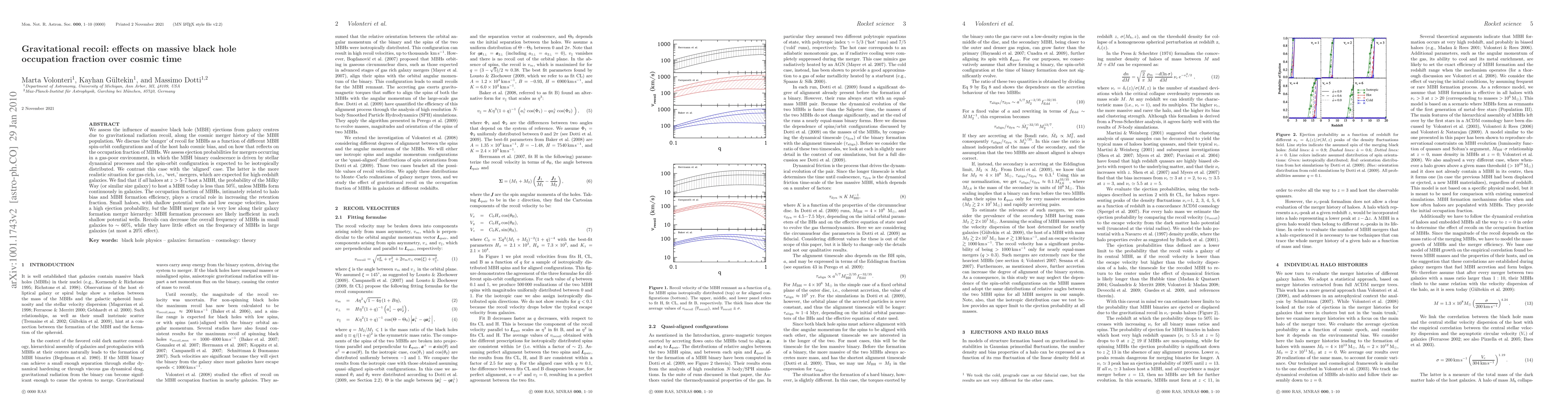 We assess the influence of massive black hole (MBH) ejections from galaxy centres, due to the gravitational radiation recoil, along the cosmic merger history of the MBH population. We discuss the 'danger' of the recoil for MBHs as a function of different MBH spin/orbit configurations and of the host halo cosmic bias, and on how that reflects on the 'occupation fraction' of MBHs. We assess ejection probabilities for mergers occurring in a gas-poor environment, where the MBH binary coalescence is driven by stellar dynamical processes, and the spin/orbit configuration is expected to be isotropically distributed. We contrast this case with the 'aligned' case. The latter is the most realistic situation for 'wet', gas-rich mergers, which are the expectation for high-redshift galaxies. We find that if all halos at z>5-7 host a MBH, the probability of the Milky Way (or similar size galaxy) to host a MBH today is less than 50%, unless MBHs form continuously in galaxies. The 'occupation fraction' of MBHs, intimately related to halo bias and MBH formation efficiency, plays a crucial role in increasing the retention fraction. Small halos, with shallow potential wells and low escape velocities, have a high ejection probability, but the MBH merger rate is very low along their galaxy formation merger hierarchy: MBH formation processes are likely inefficient in such shallow potential wells. Recoils can decrease the overall frequency of MBHs in small galaxies to ~60%, while they have little effect on the frequency of MBHs in large galaxies (at most a 20% effect).