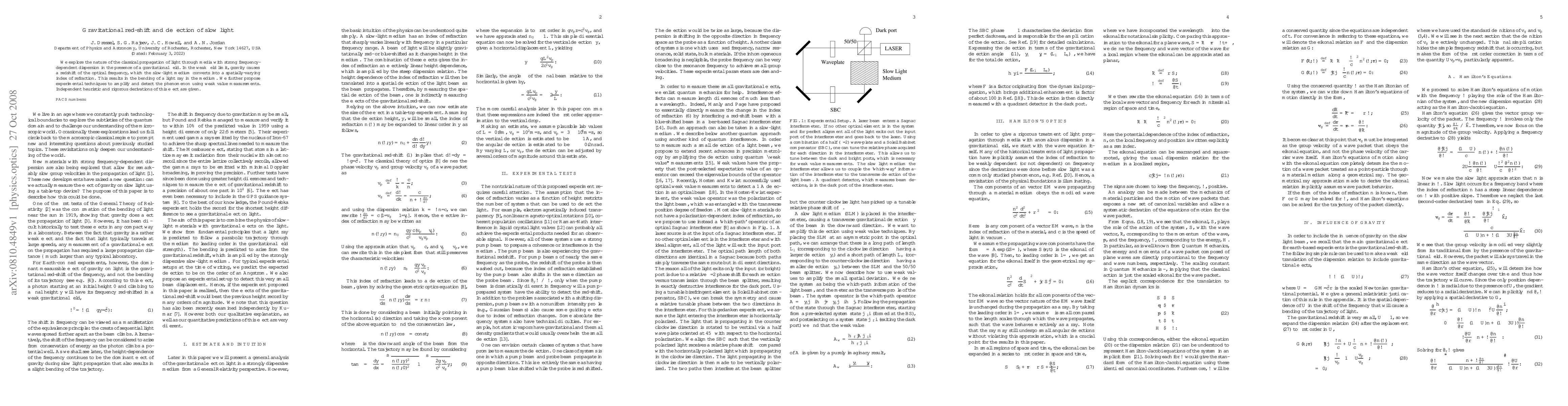 We explore the nature of the classical propagation of light through media with strong frequency-dependent dispersion in the presence of a gravitational field. In the weak field limit, gravity causes a redshift of the optical frequency, which the slow-light medium converts into a spatially-varying index of refraction. This results in the bending of a light ray in the medium. We further propose experimental techniques to amplify and detect the phenomenon using weak value measurements. Independent heuristic and rigorous derivations of this effect are given.