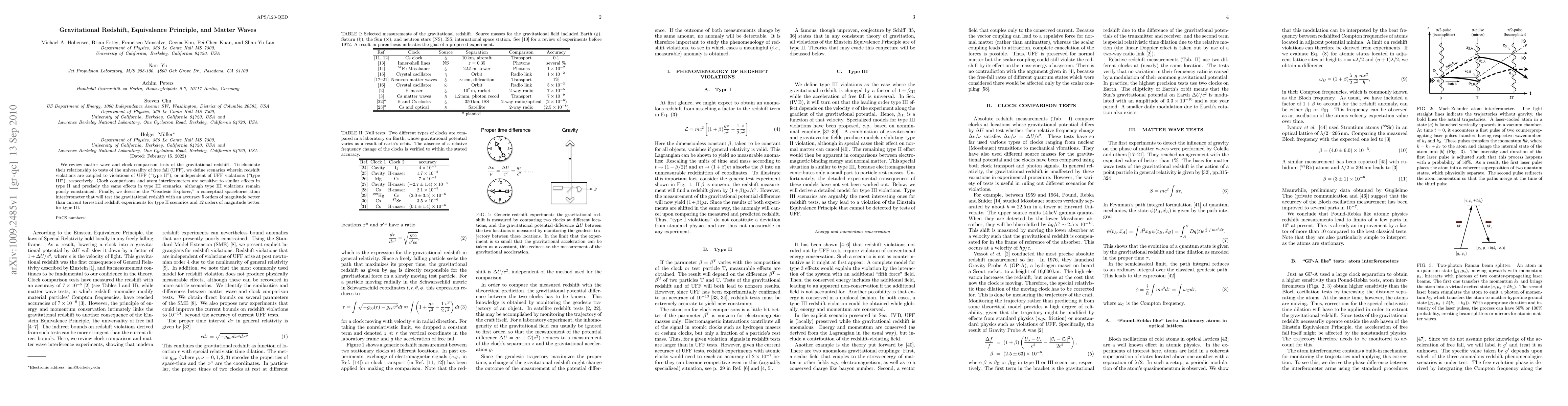 This paper reviews tests of gravitational redshift through matter wave and clock comparisons, distinguishing between scenarios where redshift violations correlate with free fall universality violations (type II) and those where they do not (type III). It proposes the "Geodesic Explorer," a spaceborne atom interferometer designed to test gravitational redshift with unprecedented accuracy, especially for type III scenarios.