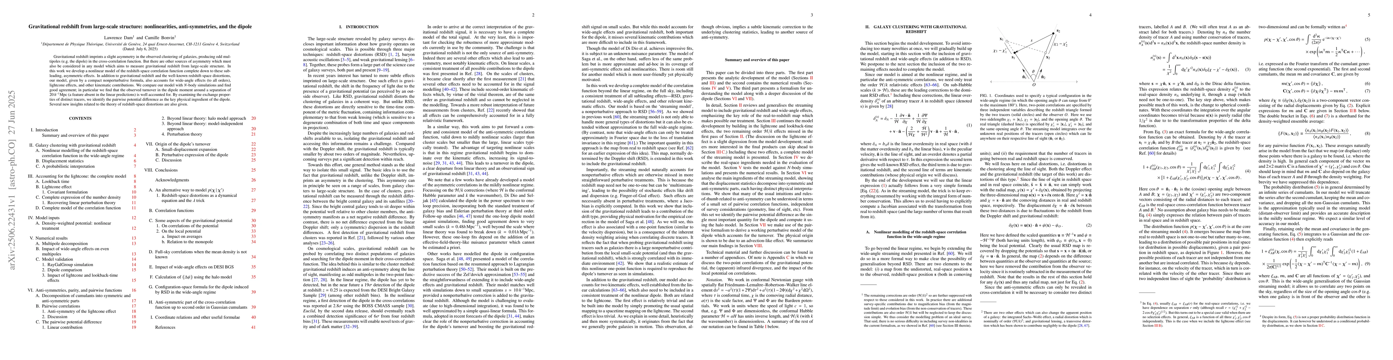 Gravitational redshift imprints a slight asymmetry in the observed clustering of galaxies, producing odd multipoles (e.g.\ the dipole) in the cross-correlation function. But there are other sources of asymmetry which must also be considered in any model which aims to measure gravitational redshift from large-scale structure. In this work we develop a nonlinear model of the redshift-space correlation function complete down to these subleading, asymmetric effects. In addition to gravitational redshift and the well-known redshift-space distortions, our model, given by a compact nonperturbative formula, also accounts for wide-angle effects (to all orders), lightcone effects, and other kinematic contributions. We compare our model with $N$-body simulations and find good agreement; in particular we find that the observed turnover in the dipole moment around a separation of $20\,h^{-1}\mathrm{Mpc}$ (a feature absent in the linear predictions) is well accounted for. By examining the exchange properties of distinct tracers, we identify the pairwise potential difference as the key physical ingredient of the dipole. Several new insights related to the theory of redshift-space distortions are also given.