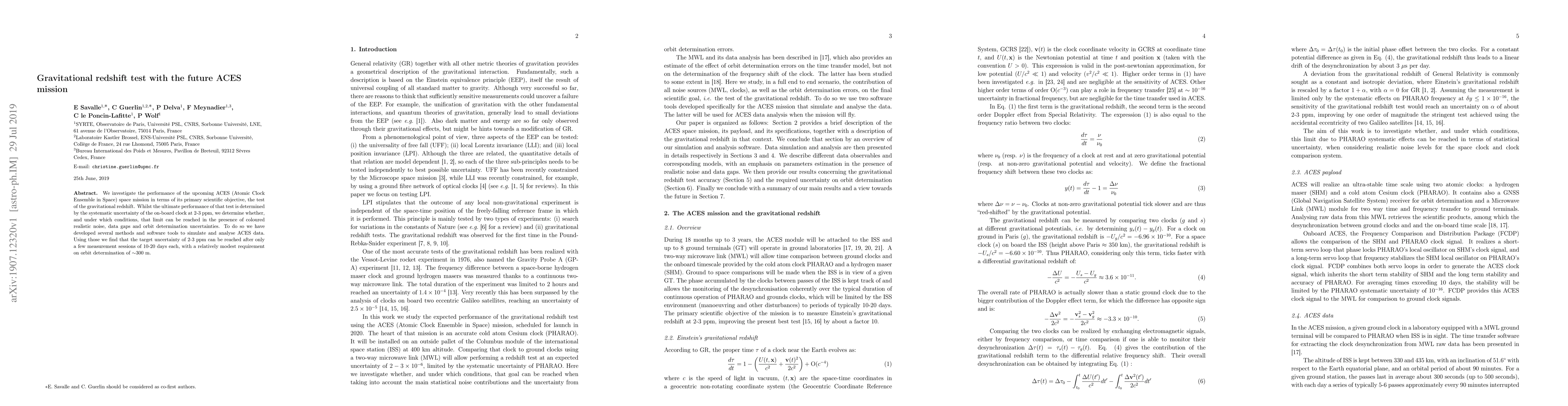 We investigate the performance of the upcoming ACES (Atomic Clock Ensemble in Space) space mission in terms of its primary scientific objective, the test of the gravitational redshift. Whilst the ultimate performance of that test is determined by the systematic uncertainty of the on-board clock at 2-3 ppm, we determine whether, and under which conditions, that limit can be reached in the presence of colored realistic noise, data gaps and orbit determination uncertainties. To do so we have developed several methods and software tools to simulate and analyse ACES data. Using those we find that the target uncertainty of 2-3 ppm can be reached after only a few measurement sessions of 10-20 days each, with a relatively modest requirement on orbit determination of around 300 m.