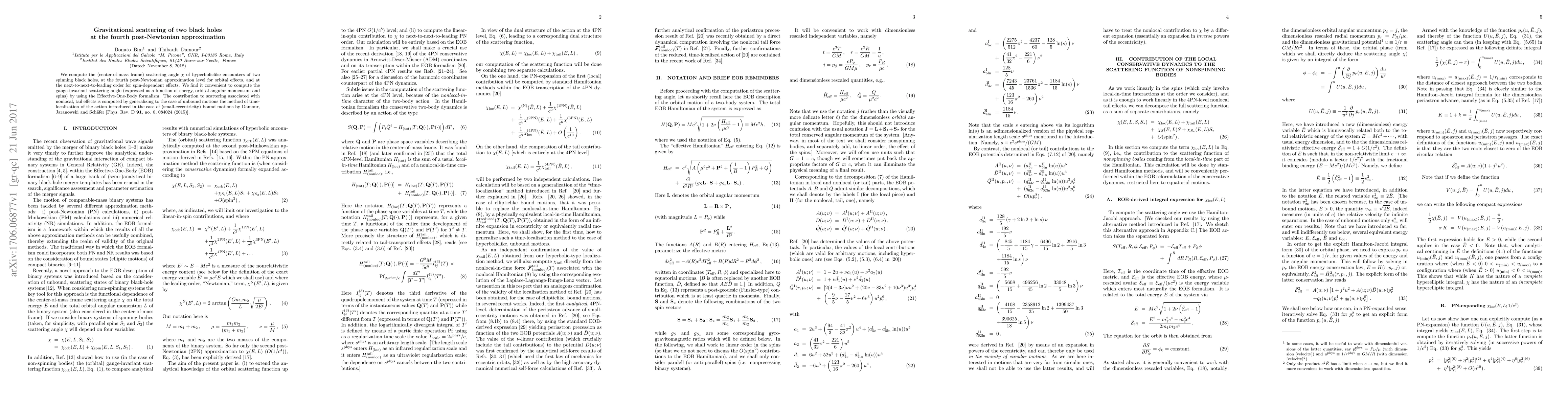 We compute the (center-of-mass frame) scattering angle $\chi$ of hyperboliclike encounters of two spinning black holes, at the fourth post-Newtonian approximation level for orbital effects, and at the next-to-next-to-leading order for spin-dependent effects. We find it convenient to compute the gauge-invariant scattering angle (expressed as a function of energy, orbital angular momentum and spins) by using the Effective-One-Body formalism. The contribution to scattering associated with nonlocal, tail effects is computed by generalizing to the case of unbound motions the method of time-localization of the action introduced in the case of (small-eccentricity) bound motions by Damour, Jaranowski and Sch\"afer [Phys.\ Rev.\ D {\bf 91}, no. 8, 084024 (2015)].
