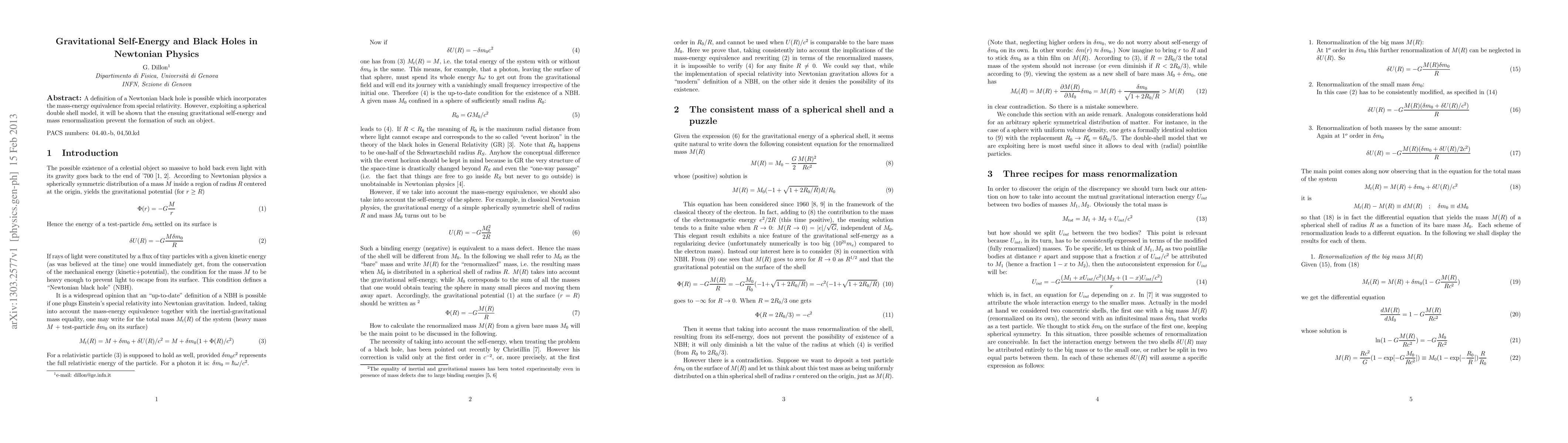 This paper explores the concept of Newtonian black holes by integrating mass-energy equivalence from special relativity. It concludes that using a double spherical shell model, the resulting gravitational self-energy and mass renormalization inhibit the formation of such objects.