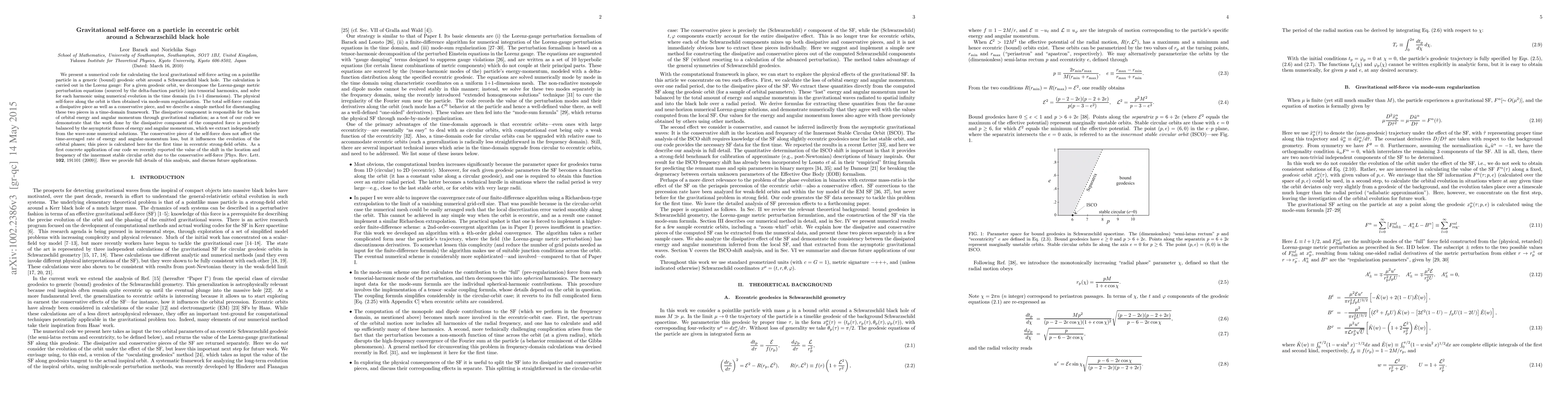 This paper presents a numerical code to calculate the gravitational self-force on a particle in an eccentric orbit around a Schwarzschild black hole, decomposing the Lorenz-gauge metric perturbation into tensorial harmonics and solving them numerically. The code disentangles the self-force into dissipative and conservative components, demonstrating that the work done by the dissipative component matches the energy and angular momentum loss due to gravitational radiation.