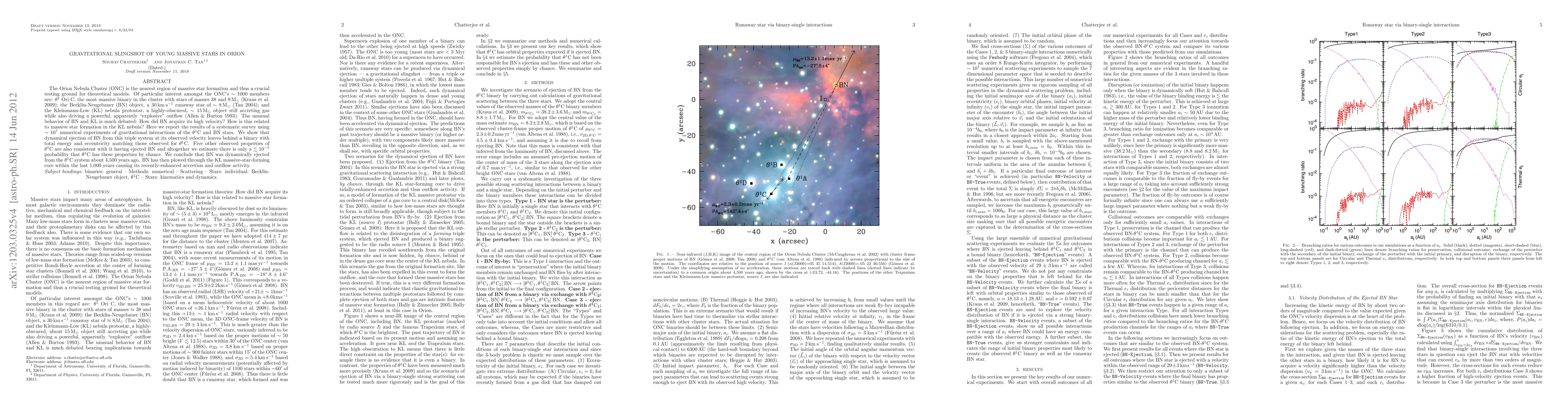 The Orion Nebula Cluster (ONC) is the nearest region of massive star formation and thus a crucial testing ground for theoretical models. Of particular interest amongst the ONC's ~1000 members are: \theta^1 Ori C, the most massive binary in the cluster with stars of masses 38 and 9 MSun (Kraus et al. 2009); the Becklin-Neugebauer (BN) object, a 30 km/s runaway star of ~8 MSun (Tan 2004); and the Kleinmann-Low (KL) nebula protostar, a highly-obscured, ~15 MSun object still accreting gas while also driving a powerful, apparently "explosive" outflow (Allen & Burton 1993). The unusual behavior of BN and KL is much debated: How did BN acquire its high velocity? How is this related to massive star formation in the KL nebula? Here we report the results of a systematic survey using ~ 10^7 numerical experiments of gravitational interactions of the \theta^1C and BN stars. We show that dynamical ejection of BN from this triple system at its observed velocity leaves behind a binary with total energy and eccentricity matching those observed for \theta^1C. Five other observed properties of \theta^C are also consistent with it having ejected BN and altogether we estimate there is only a <~ 10^{-5} probability that \theta^1C has these properties by chance. We conclude that BN was dynamically ejected from the \theta^1C system about 4,500 years ago. BN has then plowed through the KL massive-star-forming core within the last 1,000 years causing its recently-enhanced accretion and outflow activity.