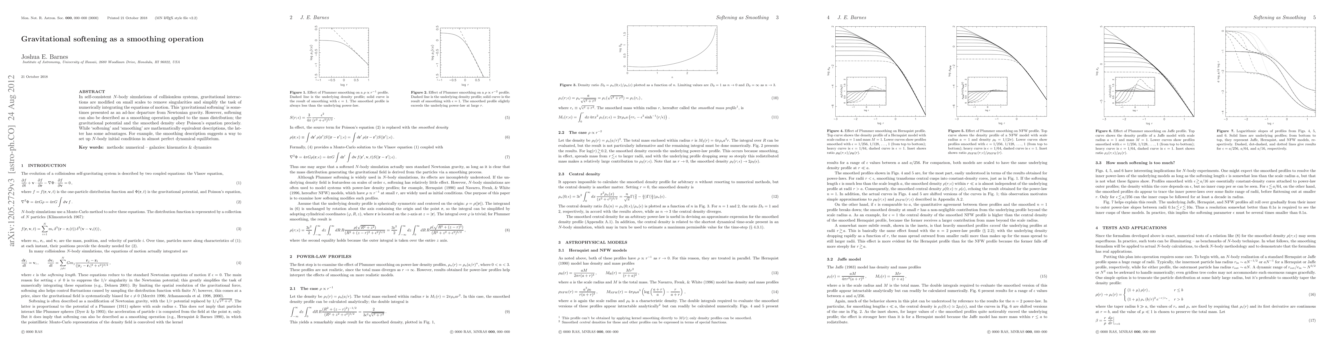 In self-consistent N-body simulations of collisionless systems, gravitational interactions are modified on small scales to remove singularities and simplify the task of numerically integrating the equations of motion. This `gravitational softening' is sometimes presented as an ad-hoc departure from Newtonian gravity. However, softening can also be described as a smoothing operation applied to the mass distribution; the gravitational potential and the smoothed density obey Poisson's equation precisely. While `softening' and `smoothing' are mathematically equivalent descriptions, the latter has some advantages. For example, the smoothing description suggests a way to set up N-body initial conditions in almost perfect dynamical equilibrium.
