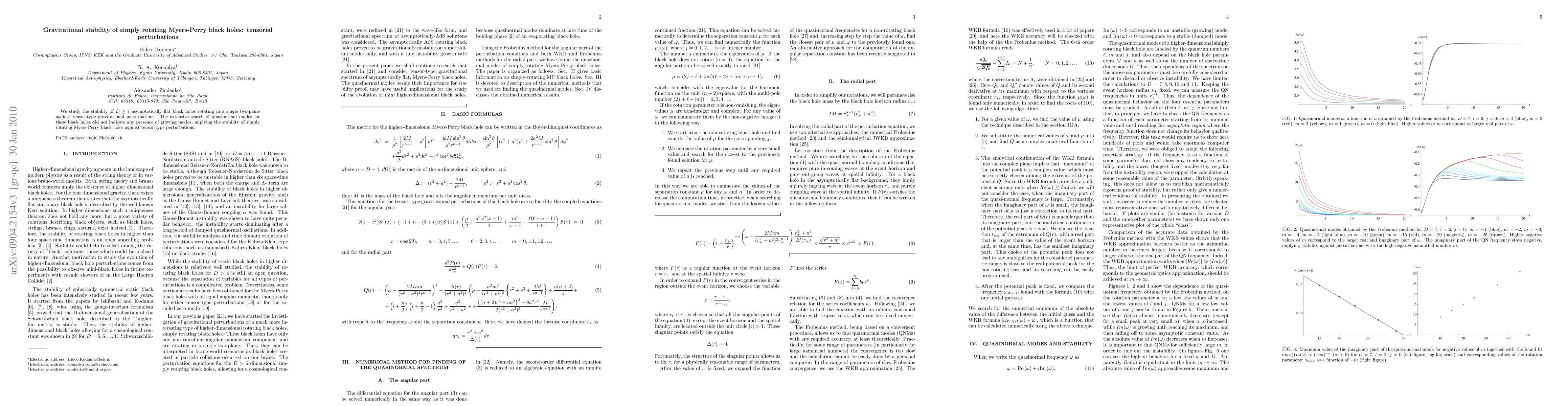 This paper investigates the gravitational stability of high-dimensional rotating Myers-Perry black holes against tensor perturbations, finding no growing modes and confirming their stability under such perturbations.