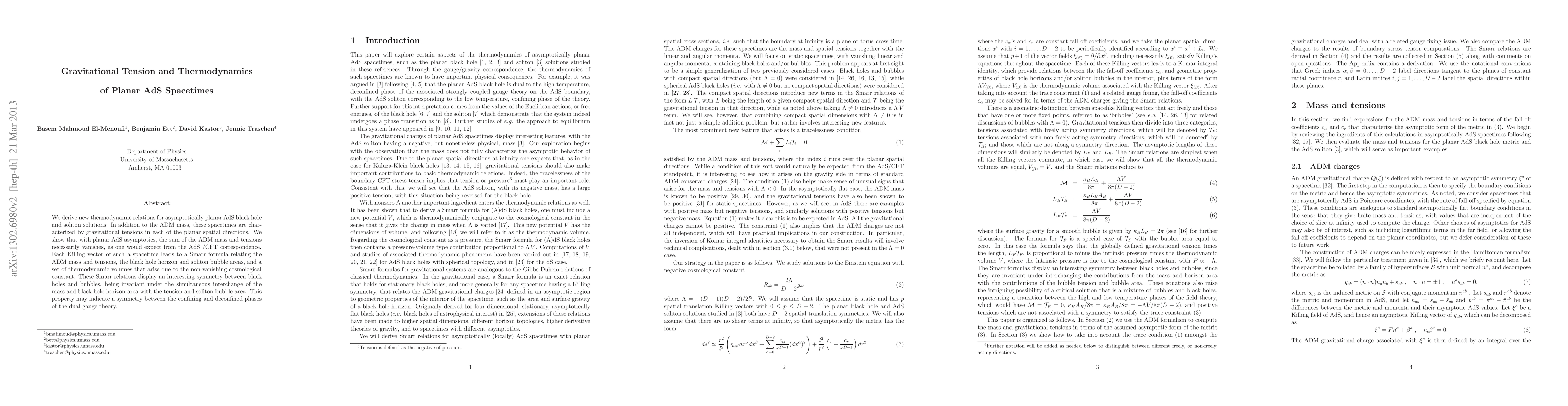 Researchers derive new thermodynamic relations for planar AdS black hole and soliton solutions, revealing a symmetry between black holes and bubbles in the dual gauge theory, which may indicate a connection between confining and deconfined phases.