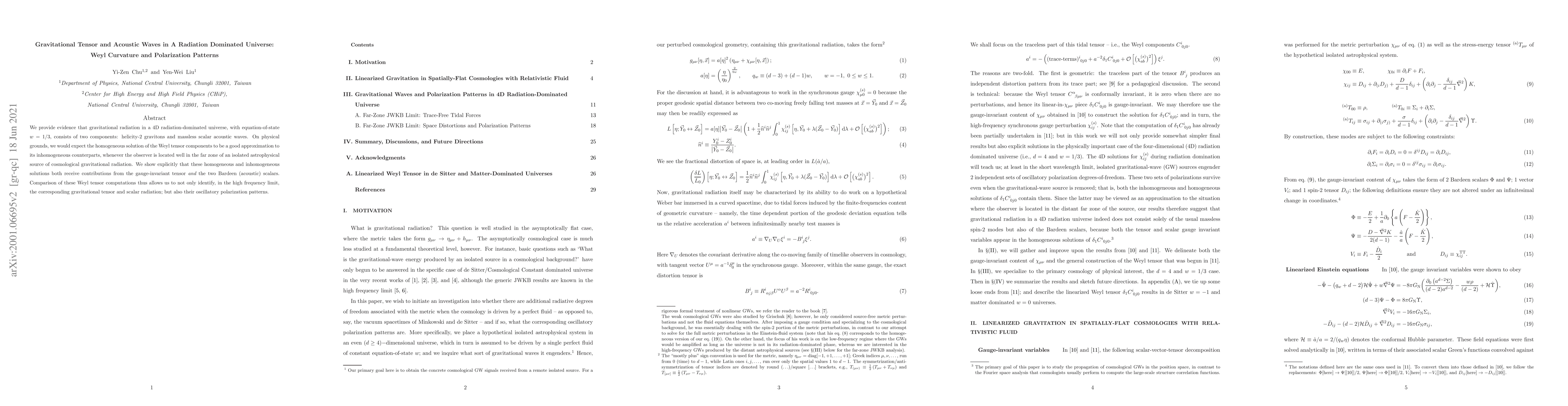 Researchers show that gravitational waves in a radiation-dominated universe consist of two components: helicity-2 gravitons and massless scalar acoustic waves with distinct oscillatory polarization patterns.