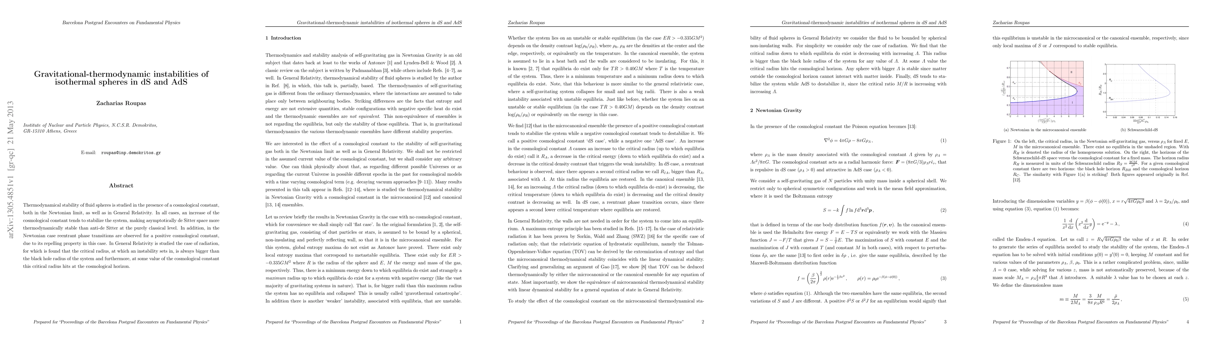 This paper investigates the thermodynamic stability of isothermal spheres in de Sitter (dS) and anti-de Sitter (AdS) spaces, showing that higher cosmological constants stabilize these systems. In Newtonian physics, positive cosmological constants lead to reentrant phase transitions, while in General Relativity, the critical radius for instability is larger than the black hole radius and aligns with the cosmological horizon at certain cosmological constant values.