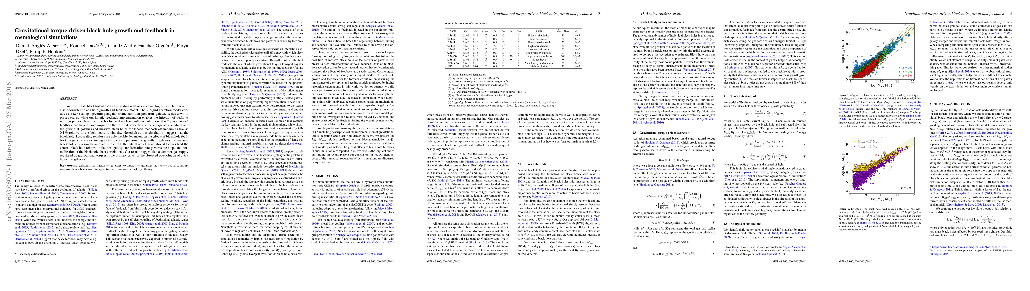 This paper explores black hole growth and feedback mechanisms in cosmological simulations, finding that gravitational torques are the primary driver of black hole-galaxy co-evolution, while "quasar mode" feedback impacts intergalactic medium and galaxy growth despite its relatively low efficiency.