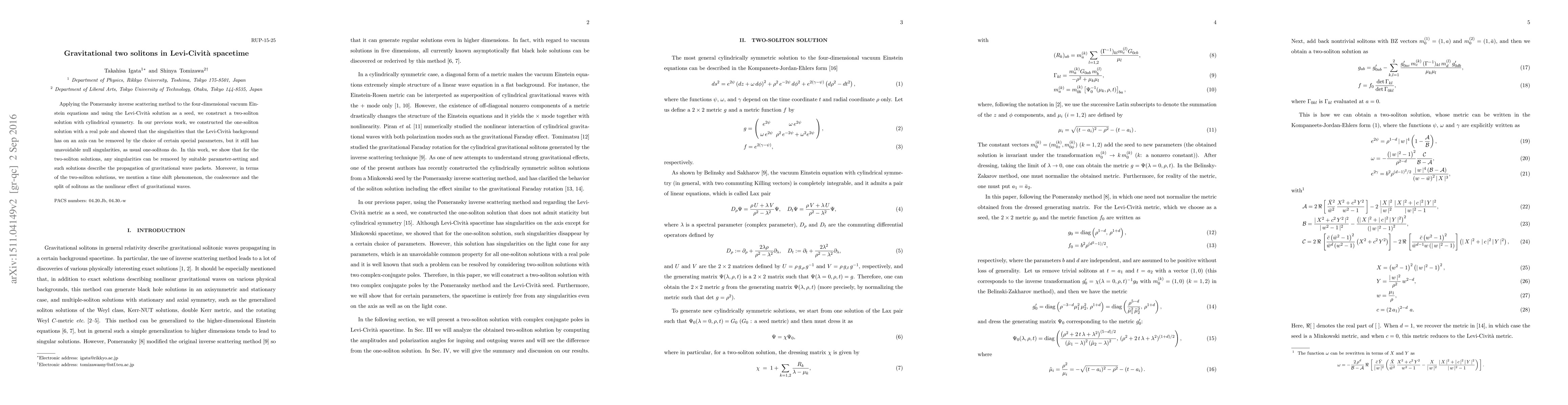 This paper constructs a two-soliton solution in four-dimensional vacuum Einstein equations using the Pomeransky inverse scattering method and Levi-Civita spacetime. Unlike one-soliton solutions, the two-soliton solutions can remove all singularities by appropriate parameter adjustments, describing gravitational wave packets and exhibiting nonlinear effects like time shifts, coalescence, and soliton splits.