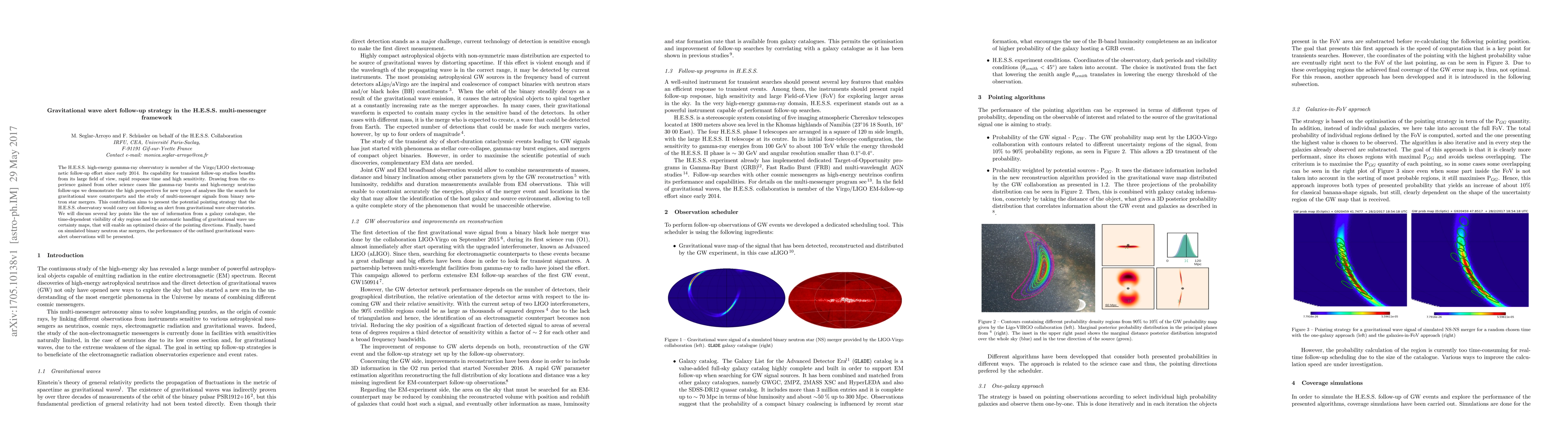 This paper outlines H.E.S.S.'s strategy for follow-up observations after gravitational wave alerts, emphasizing optimized pointing directions using galaxy catalogues and time-dependent visibility. It demonstrates the observatory's potential for multi-messenger studies, particularly for binary neutron star mergers.