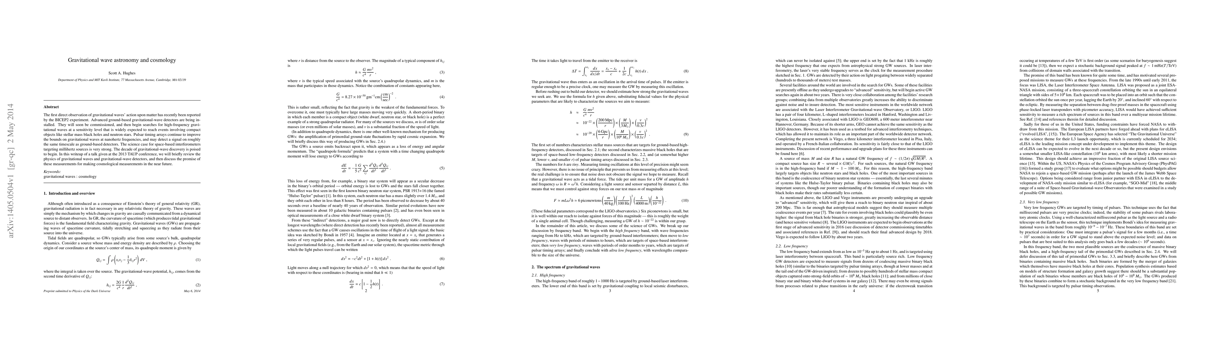 The first direct observation of gravitational waves' action upon matter has recently been reported by the BICEP2 experiment. Advanced ground-based gravitational-wave detectors are being installed. They will soon be commissioned, and then begin searches for high-frequency gravitational waves at a sensitivity level that is widely expected to reach events involving compact objects like stellar mass black holes and neutron stars. Pulsar timing arrays continue to improve the bounds on gravitational waves at nanohertz frequencies, and may detect a signal on roughly the same timescale as ground-based detectors. The science case for space-based interferometers targeting millihertz sources is very strong. The decade of gravitational-wave discovery is poised to begin. In this writeup of a talk given at the 2013 TAUP conference, we will briefly review the physics of gravitational waves and gravitational-wave detectors, and then discuss the promise of these measurements for making cosmological measurements in the near future.