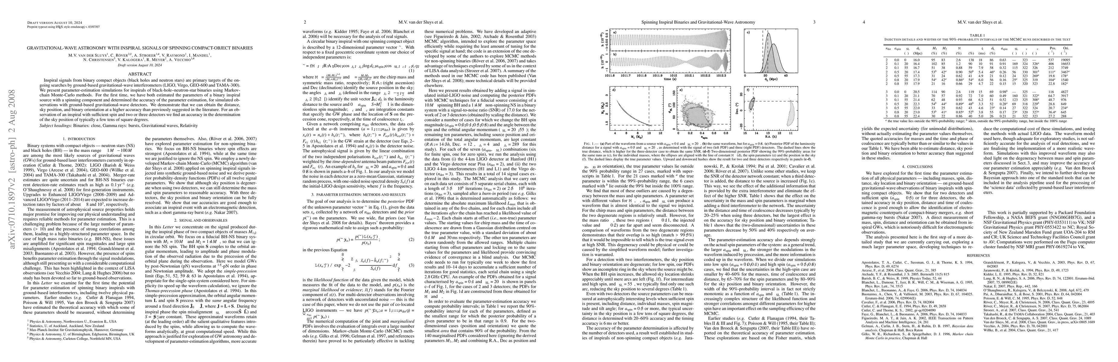 This paper presents simulations for detecting and estimating parameters of spinning compact-object binaries using Markov-chain Monte-Carlo methods, showing improved accuracy in determining distance, sky position, and orientation compared to previous methods. The study highlights the potential of ground-based gravitational-wave detectors to achieve precise localization of such inspiral events.
