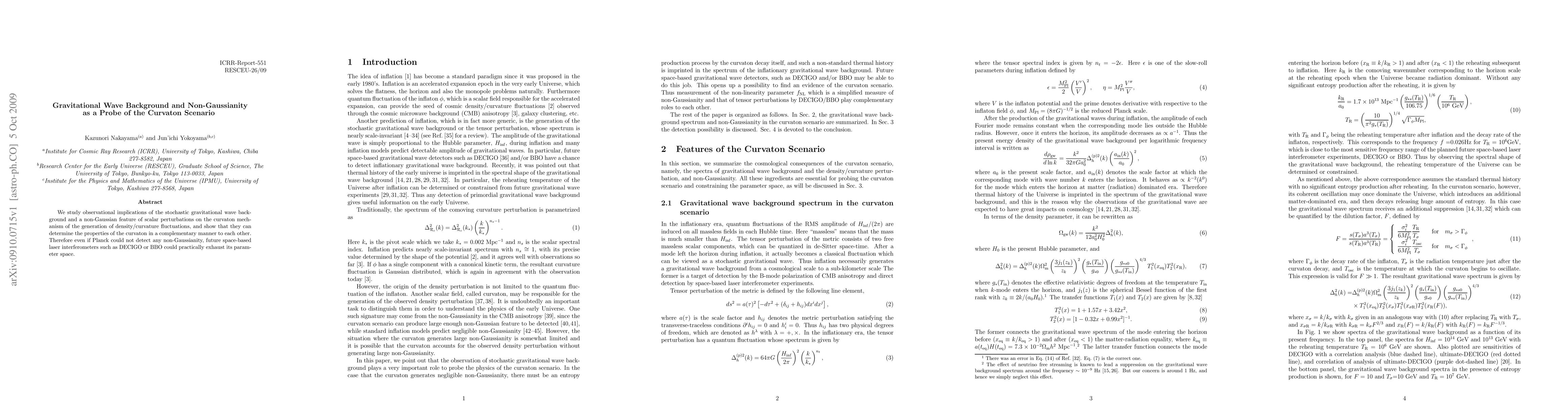 We study observational implications of the stochastic gravitational wave background and a non-Gaussian feature of scalar perturbations on the curvaton mechanism of the generation of density/curvature fluctuations, and show that they can determine the properties of the curvaton in a complementary manner to each other. Therefore even if Planck could not detect any non-Gaussianity, future space-based laser interferometers such as DECIGO or BBO could practically exhaust its parameter space.