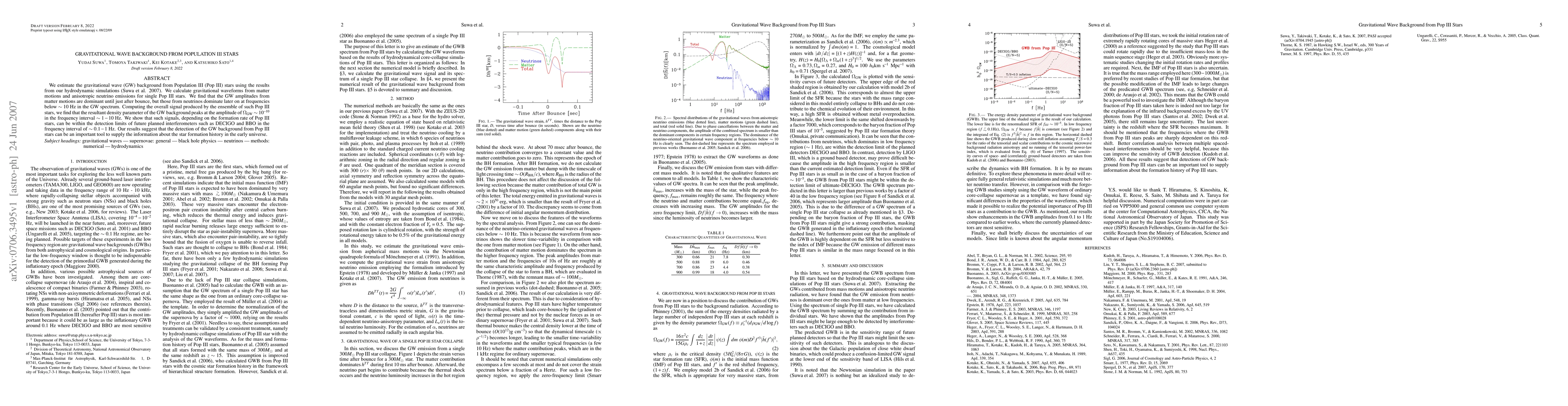 This study estimates the gravitational wave background from Population III stars, finding that neutrino emissions dominate at low frequencies below 10 Hz. The predicted density parameter peaks at $\Omega_\mathrm{GW}\sim 10^{-10}$ in the 1-10 Hz range, suggesting potential detection by future interferometers like DECIGO and BBO.