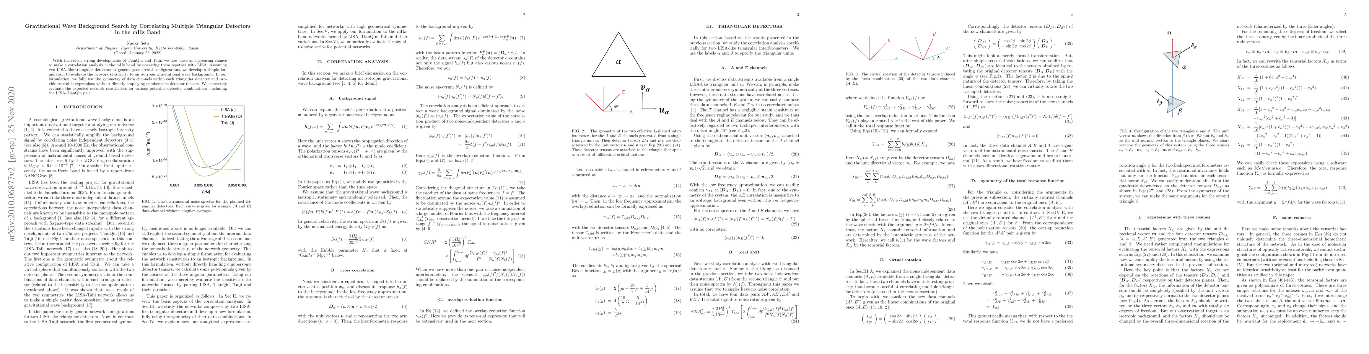 With the recent strong developments of TianQin and Taiji, we now have an increasing chance to make a correlation analysis in the mHz band by operating them together with LISA. Assuming two LISA-like triangular detectors at general geometrical configurations, we develop a simple formulation to evaluate the network sensitivity to an isotropic gravitational wave background. In our formulation, we fully use the symmetry of data channels within each triangular detector and provide tractable expressions without directly employing cumbersome detector tensors. We concretely evaluate the expected network sensitivities for various potential detector combinations, including the LISA-TianQin pair.