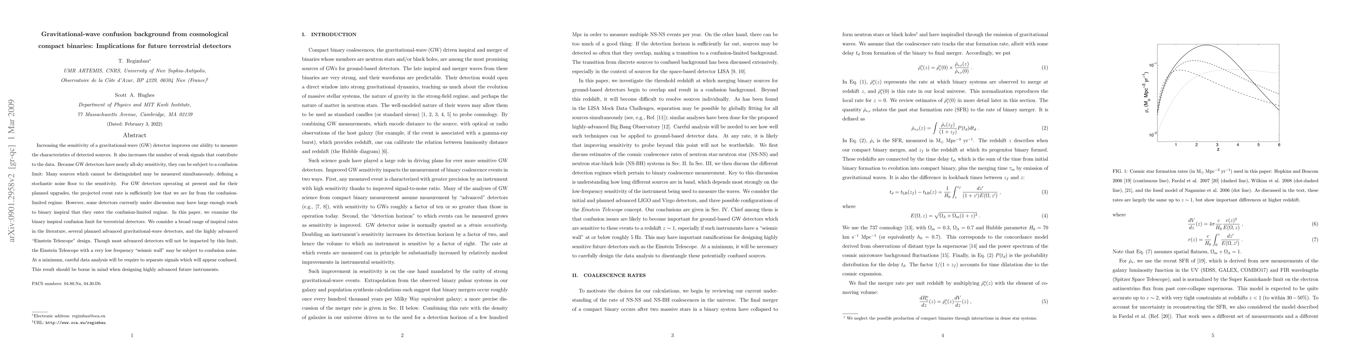 This paper investigates the gravitational-wave confusion background from cosmological compact binaries, focusing on the implications for future terrestrial detectors. While most advanced detectors will remain unaffected, the Einstein Telescope may face confusion noise due to its low frequency "seismic wall," necessitating careful data analysis to distinguish signals.