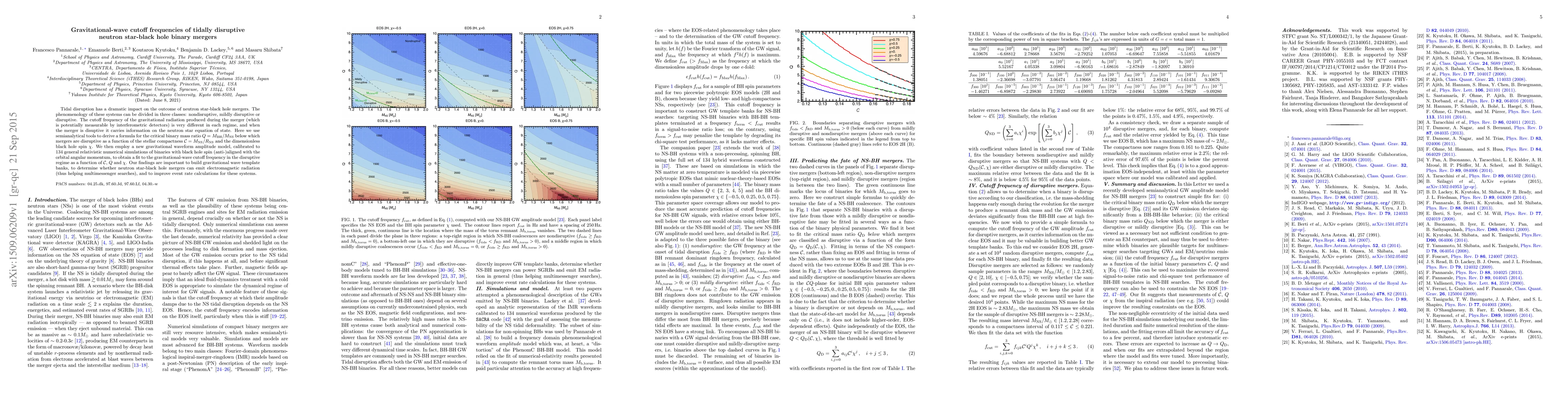 This research develops a formula for determining the critical binary mass ratio below which neutron star-black hole mergers are disruptive, using semianalytical tools and gravitational waveform models. The derived cutoff frequency for disruptive mergers provides insights into neutron star equation of state and aids in template banks, multimessenger searches, and event rate calculations.