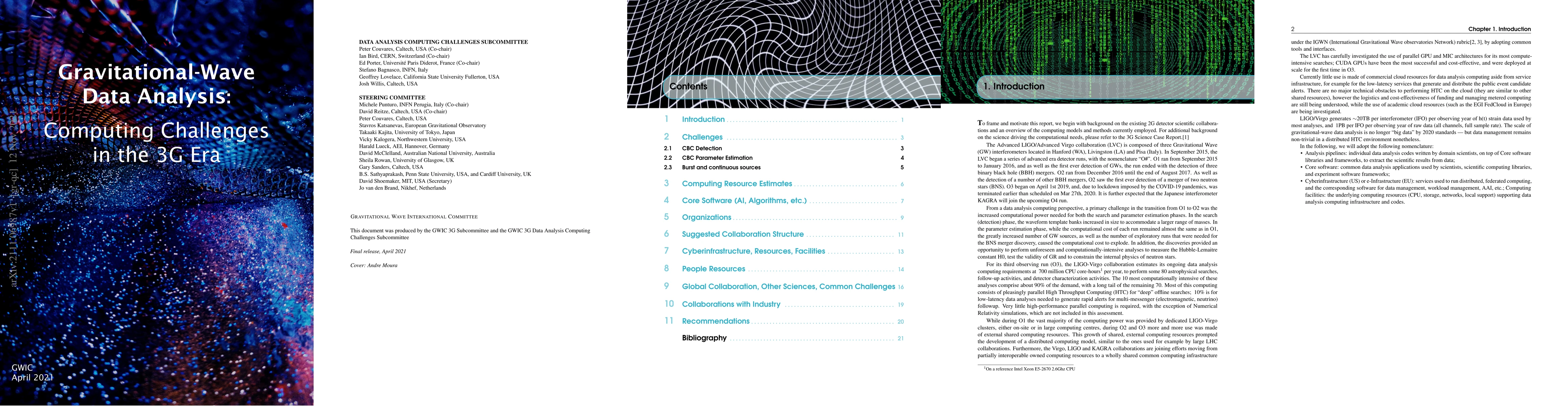Cyber infrastructure will be a critical consideration in the development of next generation gravitational-wave detectors. The demand for data analysis computing in the 3G era will be driven by the high number of detections as well as the expanded search parameter space for compact astrophysical objects and the subsequent parameter estimation follow-up required to extract the nature of the sources. Additionally, there will be an increased need to develop appropriate and scalable computing cyberinfrastructure, including data access and transfer protocols, and storage and management of software tools, that have sustainable development, support, and management processes. This report identifies the major challenges and opportunities facing 3G gravitational-wave observatories and presents recommendations for addressing them. This report is the fourth in a six part series of reports by the GWIC 3G Subcommittee: i) Expanding the Reach of Gravitational Wave Observatories to the Edge of the Universe, ii) The Next Generation Global Gravitational Wave Observatory: The Science Book, iii) 3G R&D: R&D for the Next Generation of Ground-based Gravitational Wave Detectors, iv) Gravitational Wave Data Analysis: Computing Challenges in the 3G Era (this report), v) Future Ground-based Gravitational-wave Observatories: Synergies with Other Scientific Communities, and vi) An Exploration of Possible Governance Models for the Future Global Gravitational-Wave Observatory Network.