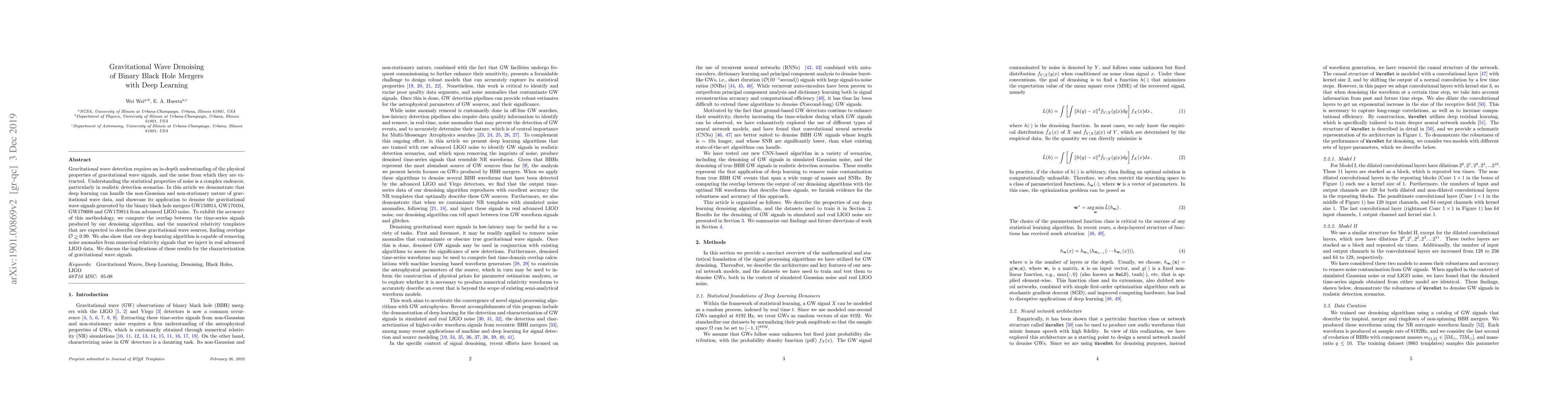 This paper demonstrates the use of deep learning to denoise gravitational wave signals from binary black hole mergers, achieving high overlap with expected numerical relativity templates. The method effectively removes noise anomalies from real data, showcasing its potential for improving the characterization of gravitational wave signals.